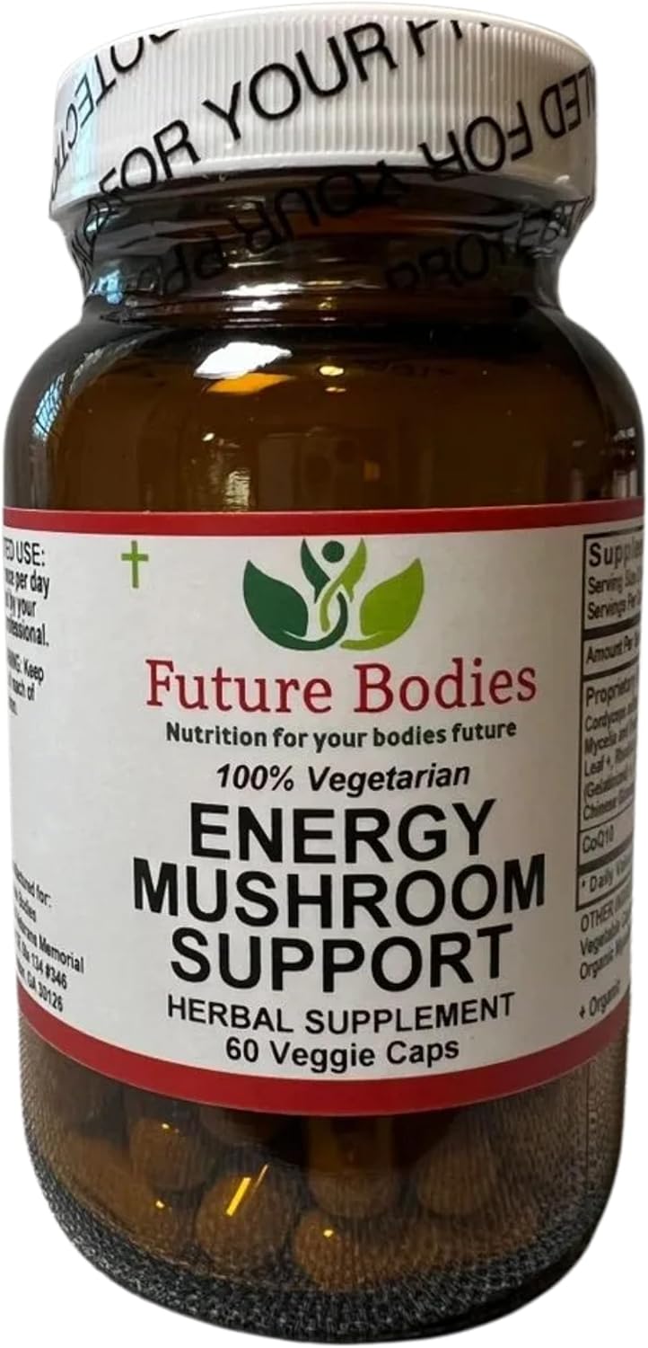 Future Bodies Energy Mushroom Support | Cordyceps, Reishi, Ginko, Rhodiola, Maca, and Chinese Ginseng | Immunity, Energy, Memory & Focus | 60 Capsules