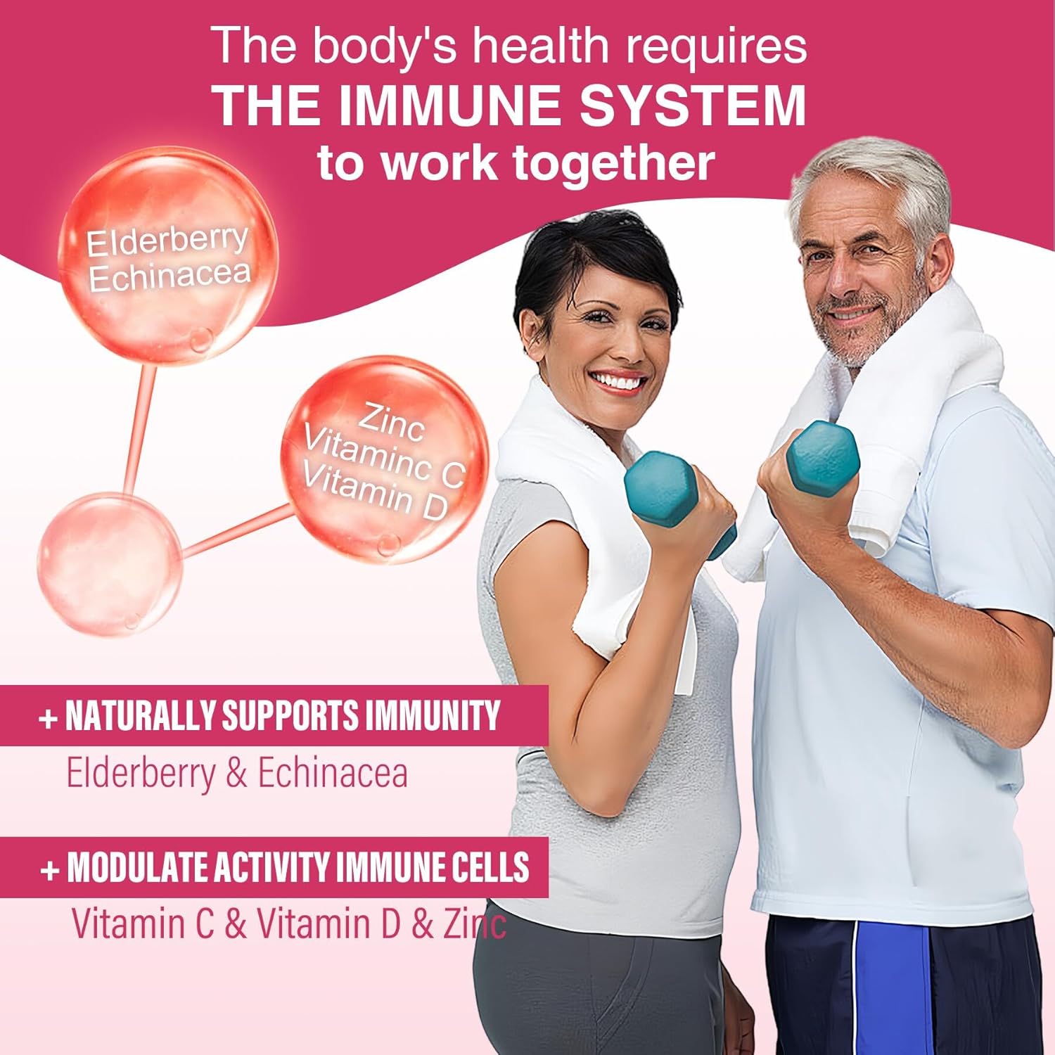 10-in-1 Immune Support Gummies with Echinacea 1200mg, Elderberry 400mg, Vitamins A C E Selenium, Turmeric, Magnesium Zinc & Vitamin D3 5000IU for Immune Boosters, Cellular Health & Bone Strong, 120cts