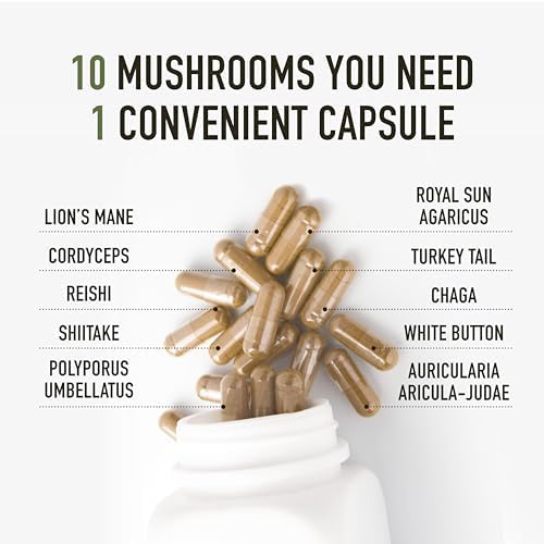 10 Mushroom Complex Supplement | 1300+ MG Blend | Immune & Adaptogen Support from Lions Mane, Turkey Tail, Cordyceps, Reishi, Shiitake, Maitake, Chaga & White Button Mushroom Extracts | 90 Capsules