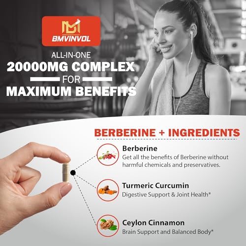 100 Capsules – 20000mg Berberine Supplement with Ceylon Cinnamon, Turmeric, Bitter Melon, Milk Thistle & More – 34in1 Berberine Capsules for Immune System, Cardiovascular & Gastrointestinal Health