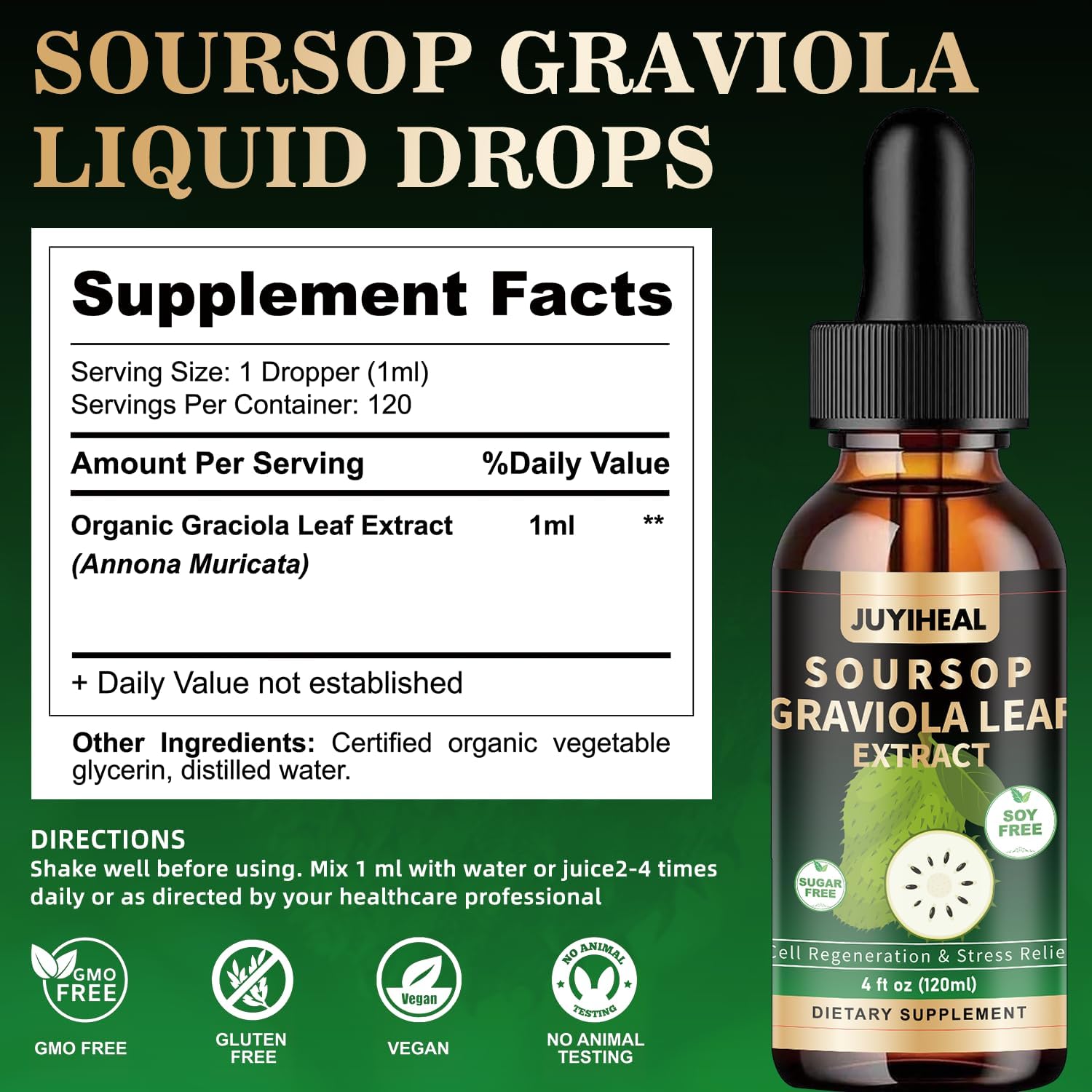 EASY TO TAKE LIQUID SOURSOP — Take 2ml vegan drops daily, 60 days supply. Shake well before use. Can take it directly, or add it to water or any drink for most lifestyles. Our soursop graviola liquid dropss are carefully made with natural flavor and high absorption, bringing the highest benefits to you and your family!