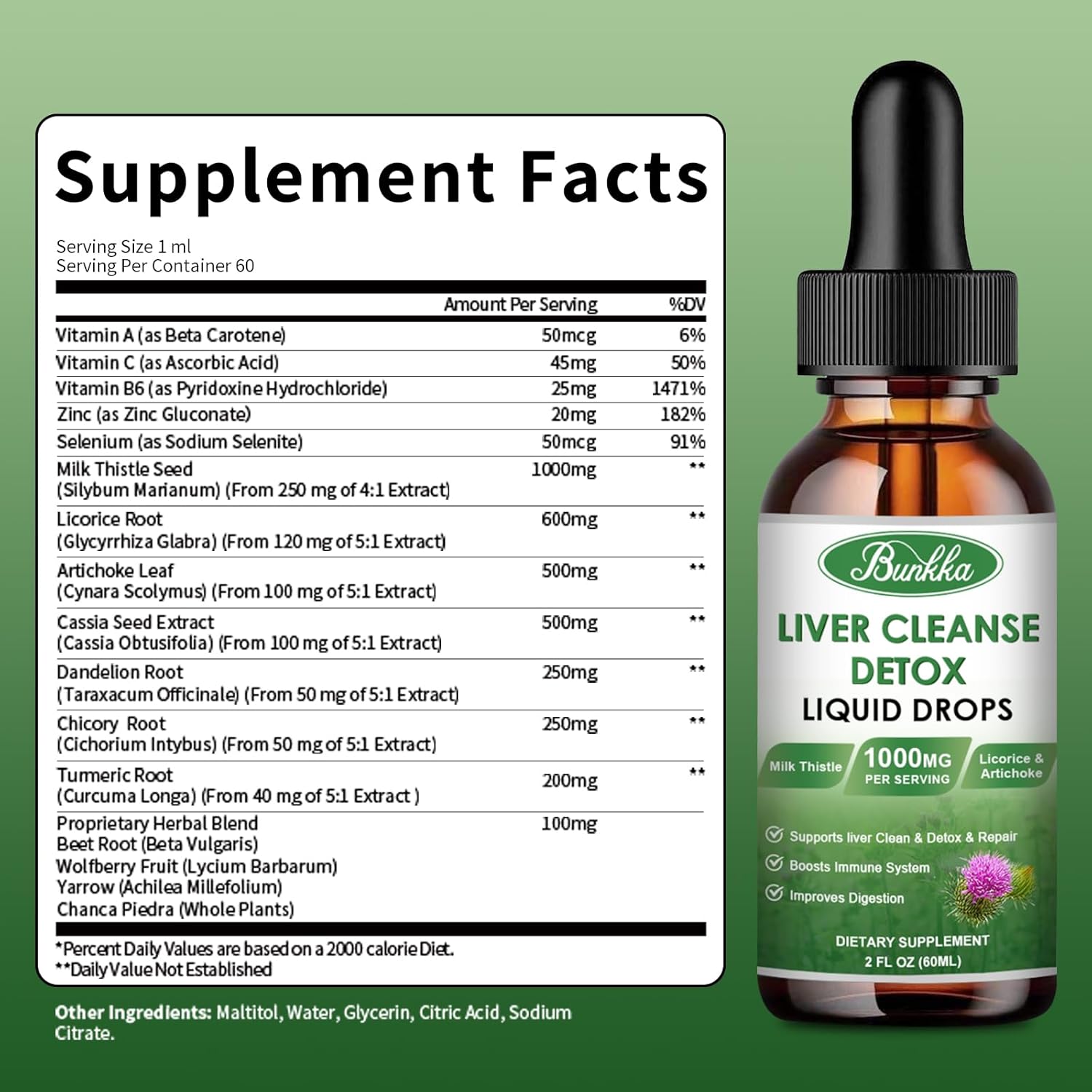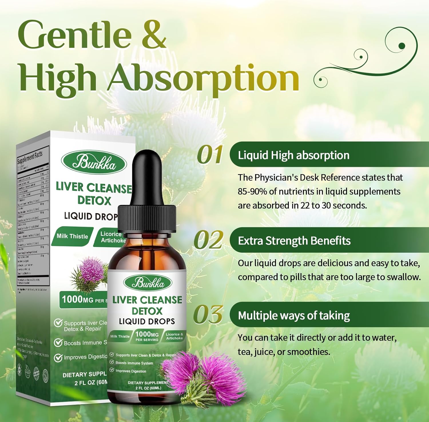 4Fl Oz Liver Cleanse Detox & Repair Liquid Drops, Milk Thistle Liver Detox Drops with Dandelion, Licorice, & More, Liver Health Support Tincture 120 Days Supplement