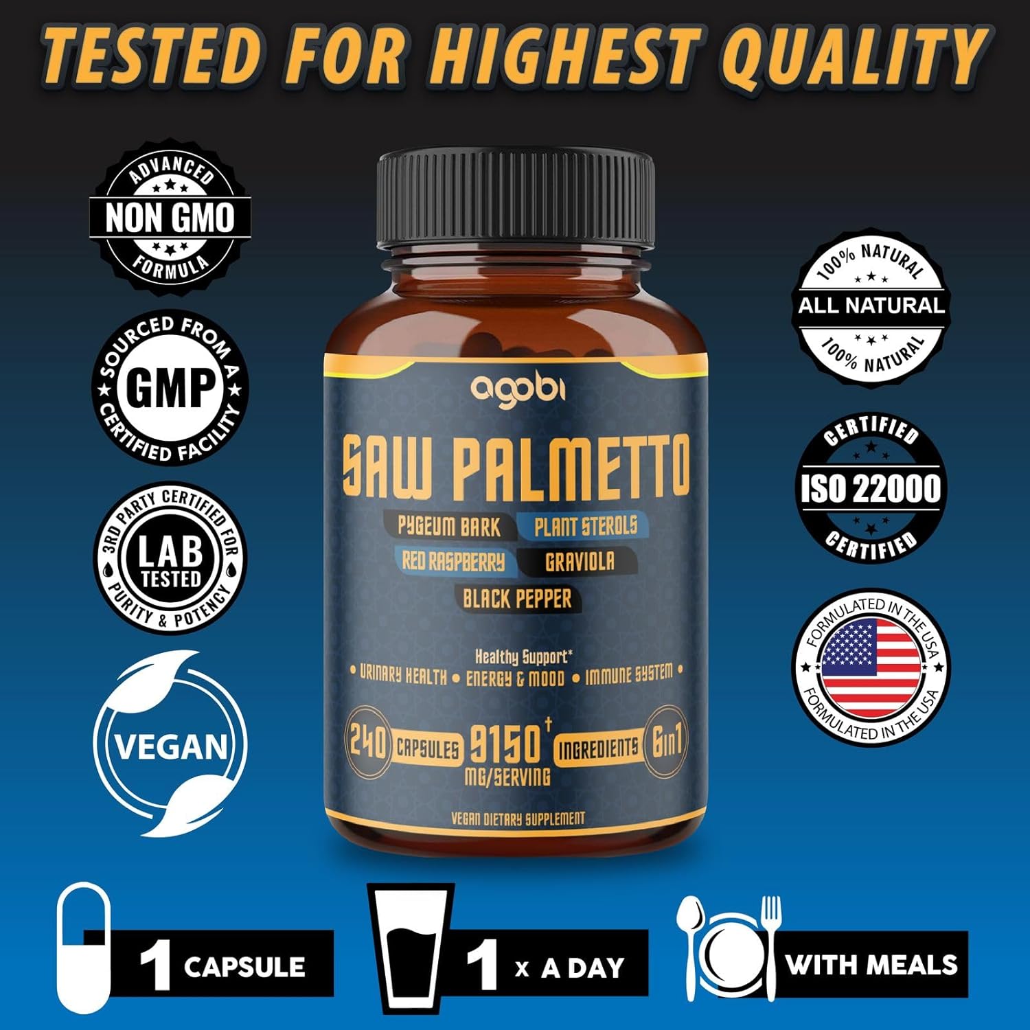 💊 Trusted Quality: Saw Palmetto Supplement is made with pure natural ingredients; Non-Gmo, Gluten-Free. All our products are third-party tested to ensure the quality and purity of each batch.