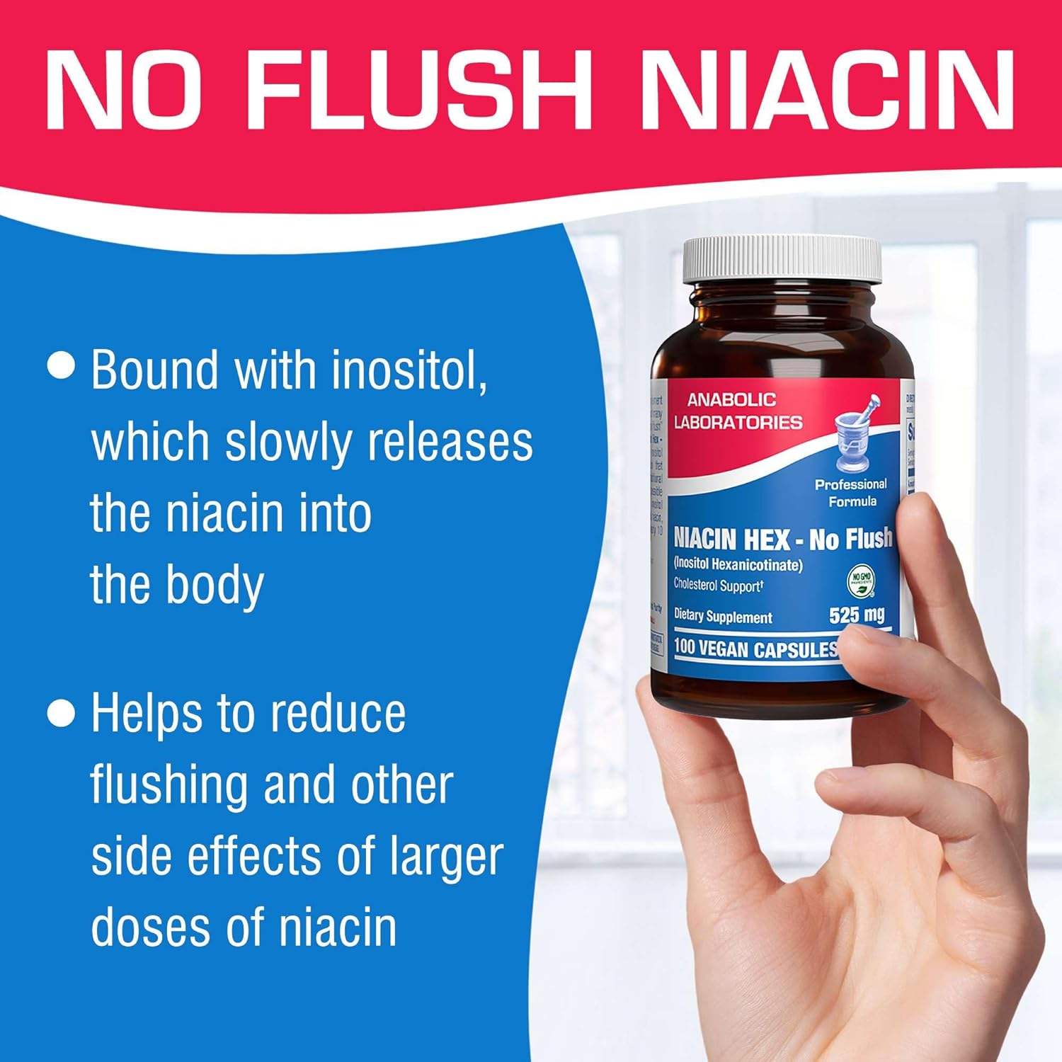 Anabolic Laboratories Vitamin B3 Niacinamide Supplement – 100 Vegan Capsules – Over 500mg Non Flushing Niacin for Cholesterol Support – Niacin Hex, Inositol Hexanicotinate