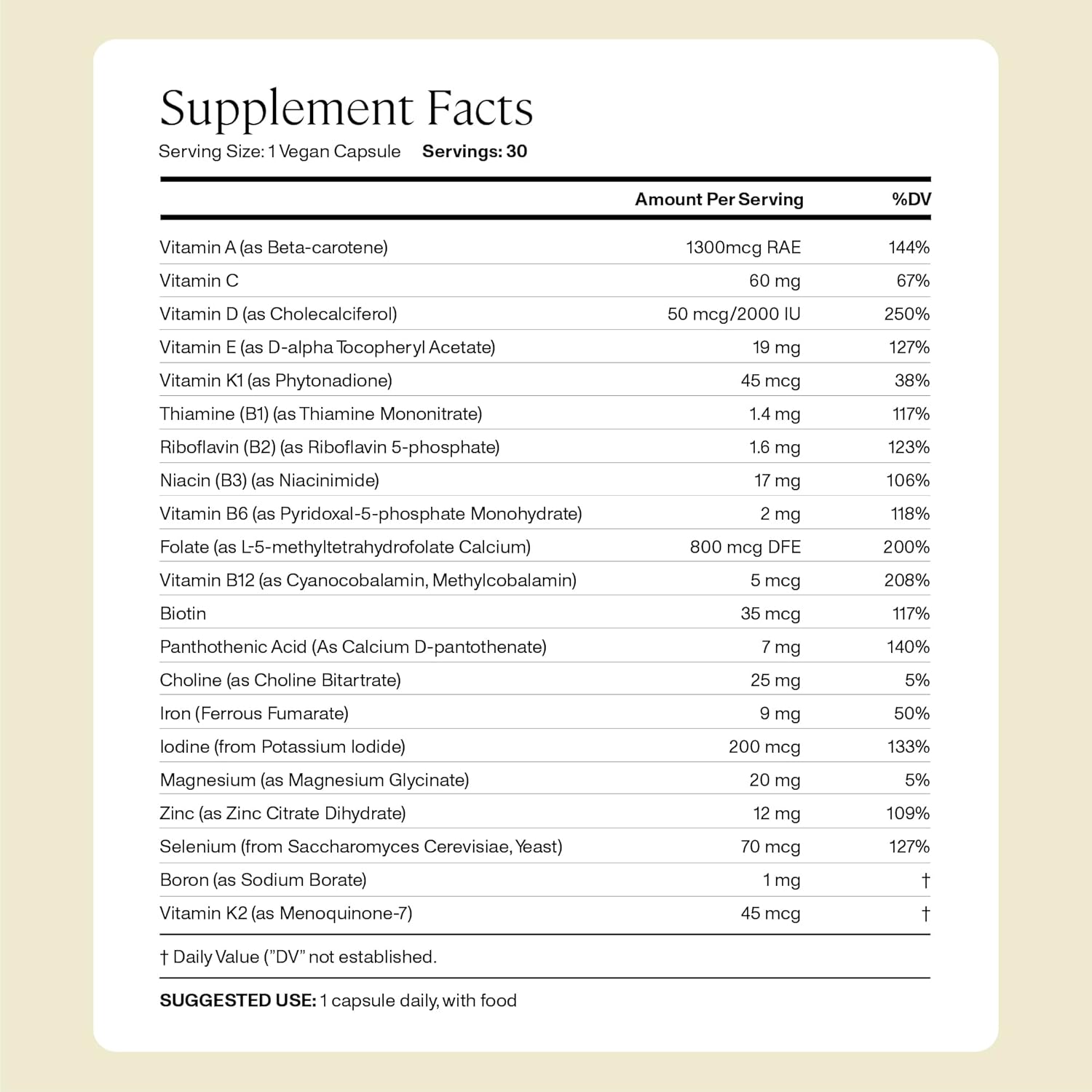 ENERGY MAINTENANCE: B vitamins are critical to energy metabolism because they help convert fat and protein into energy, and almost every cell in the body uses B12. Anya’s postnatal includes the most bioavailable forms of B vitamins for optimal absorption.
