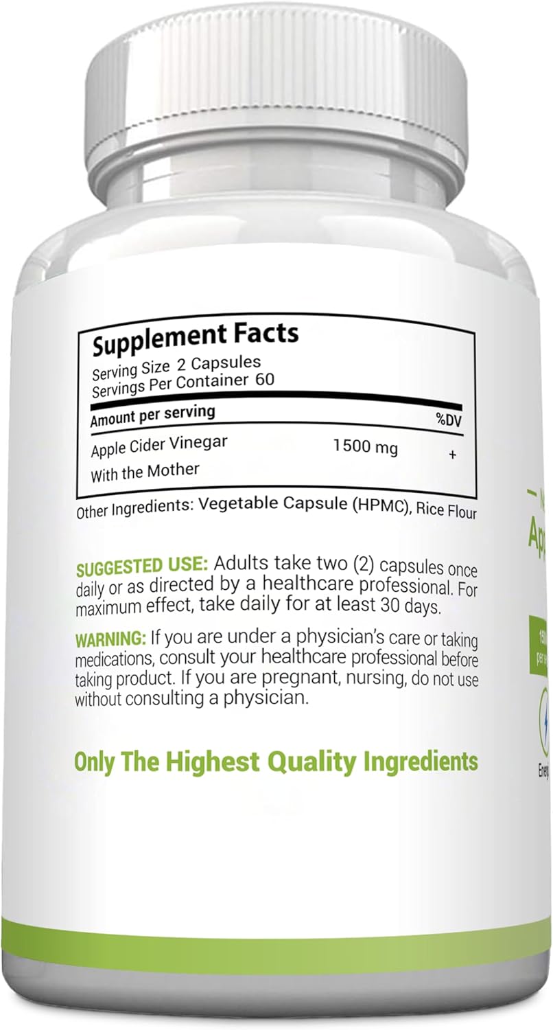 Apple Cider Vinegar Capsules – with The Mother – 1500mg ACV Pills – High Potency, Non-GMO, Gluten-Free – 60-Day Supply