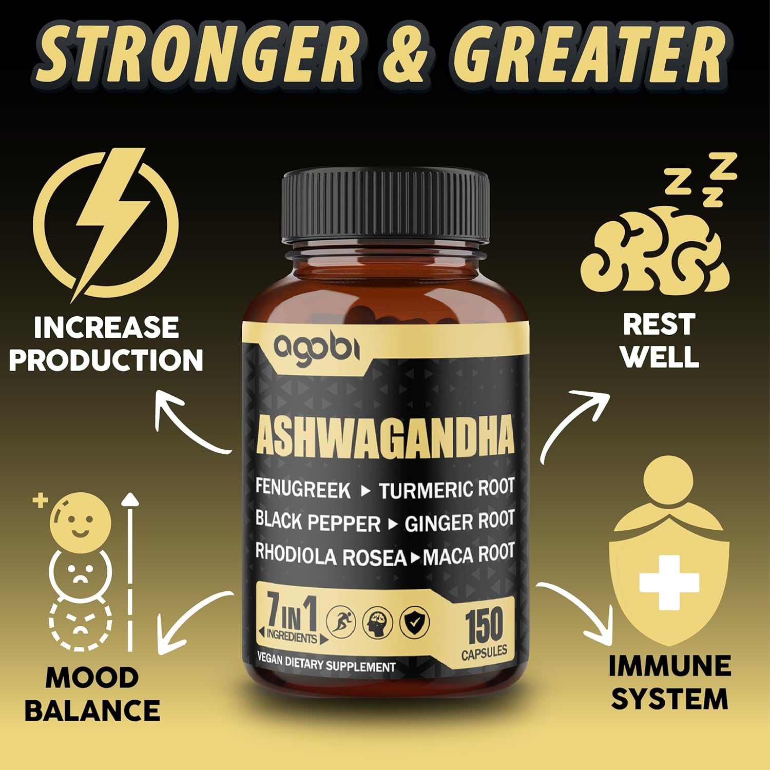 🌿 Superior Potency: Agobi Herbal Supplement containing 8050mg of 7 pure high-quality herbs. Higher concentration of Ashwagandha (20:1) than others (5:1). Offering an optimized solution for health and modern living.