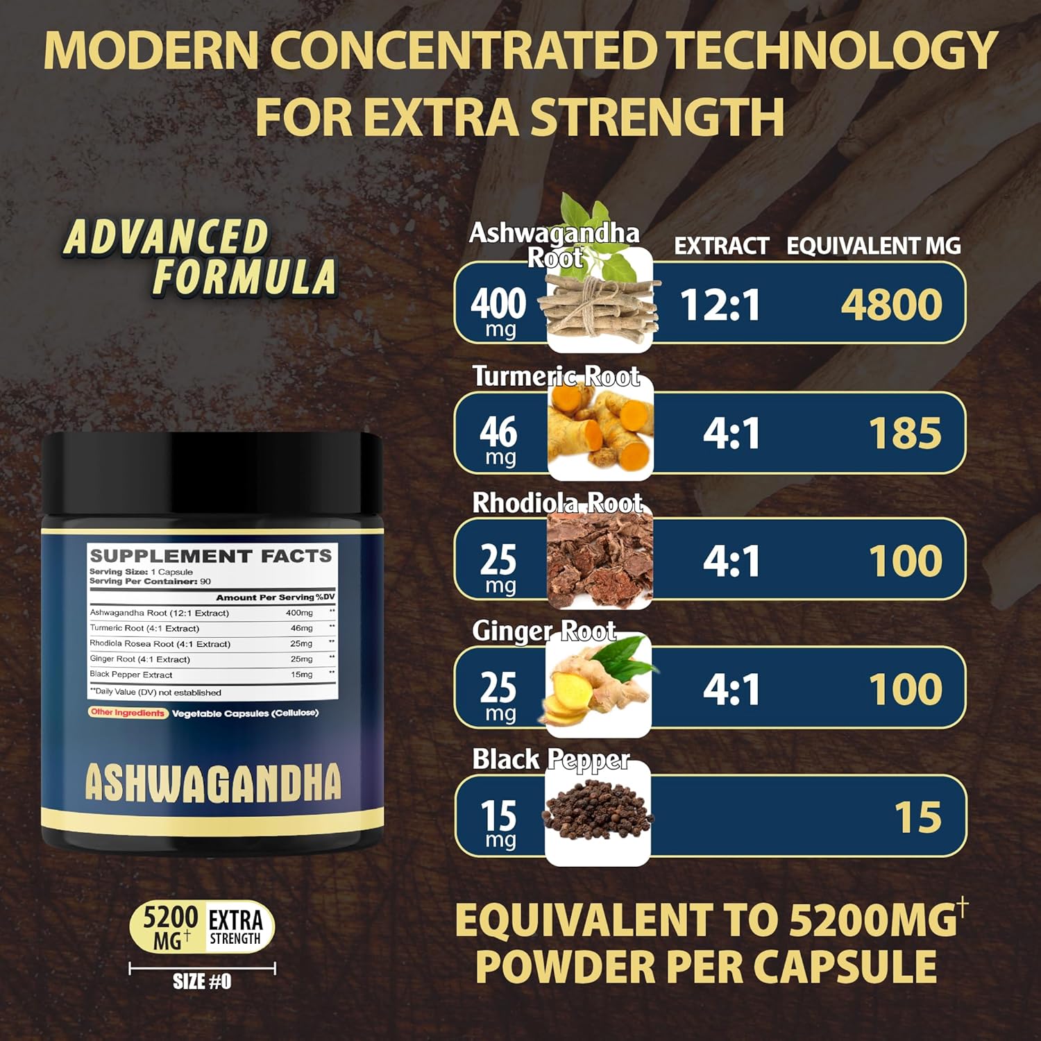 ✅ Unleash the power of Ashwagandha with our 5in1 potent blend, delivering 5200mg per serving, enhanced with Turmeric Root, Rhodiola Rosea Root, Ginger Root, and Black Pepper.