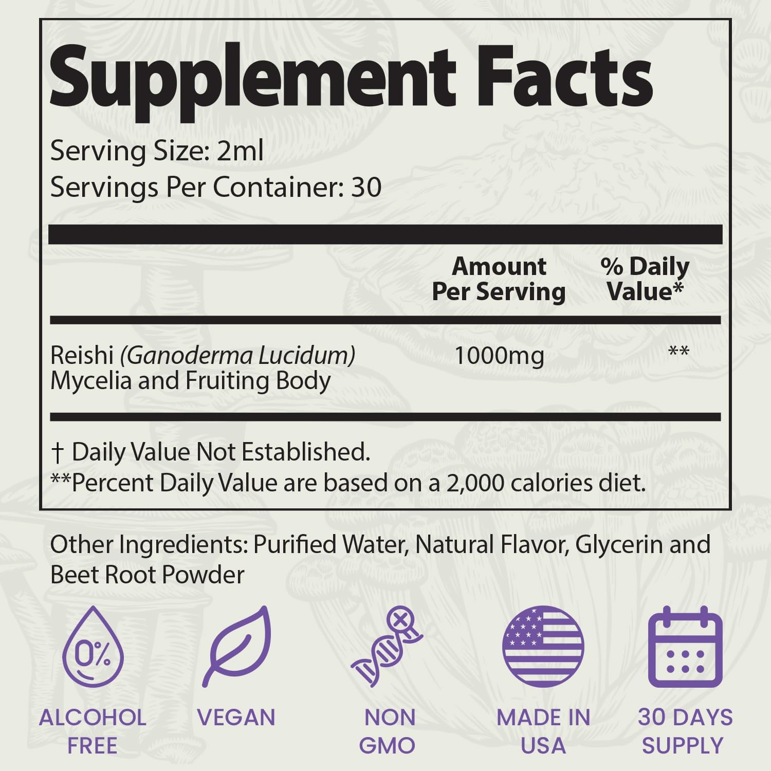 SUPPORTS STRESS – With 1,000mg of Reishi per serving, our liquid reishi tincture supports stress management and helps maintain emotional well-being.