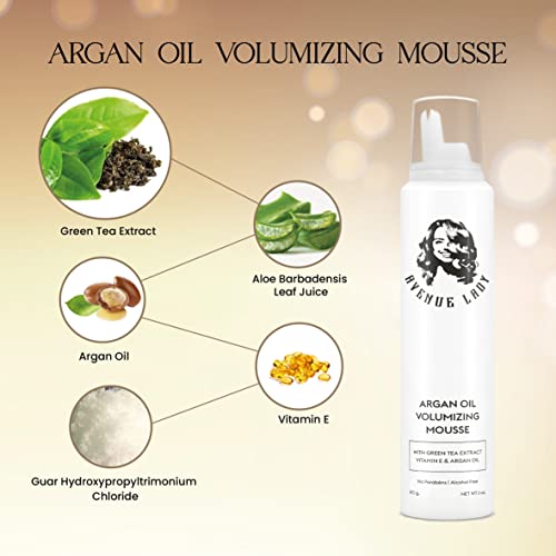 Avenue Lady Argan Oil Mousse (6.0 oz) – Volumizing Hair Products for Women – Flexible Hold Foam with Herbal Extracts for All Hair Types – Alcohol & Paraben Free – Made in the USA