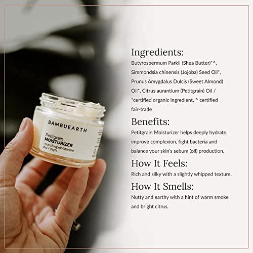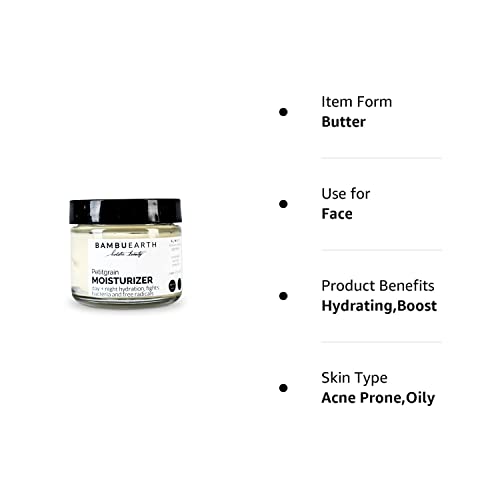 BambuEarth Petitgrain Face Moisturizer – Organic Ingredients & EWG Certified – Vegan with Organic Jojoba Oil & Shea Butter – Hydrating and Balancing Skin Care Product for Women. (1.5 oz)