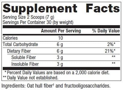 Two scoops of newly reformulated Advanced Fiber contain 3 grams of fructooligosaccharide (FOS), a prebiotic that supports a healthy intestinal environment and increases absorption of calcium and magnesium.* Prebiotics in general provide a favorable environment for beneficial gut flora.* Unflavored powder makes a convenient addition to juices, smoothies, or meal replacement shakes. 30 serving jar. Adequate amounts of daily dietary fiber are important for maintenance of digestive regularity and increased fiber intake has been associated with a number of protective health benefits. The recommended intake for adults is 14 g total fiber per 1,000 kcal, or 25 g for women and 38 g for men.1 Two servings of reformulated Advanced Fiber provides 12 g of dietary fiber.Many people, including bariatric patients, obtain low amounts of fiber from their diet. Newly reformulated Advanced Fiber from Bariatric Advantage provides a convenient option for supplementary fiber and has been formulated specifically for the bariatric surgery patient.