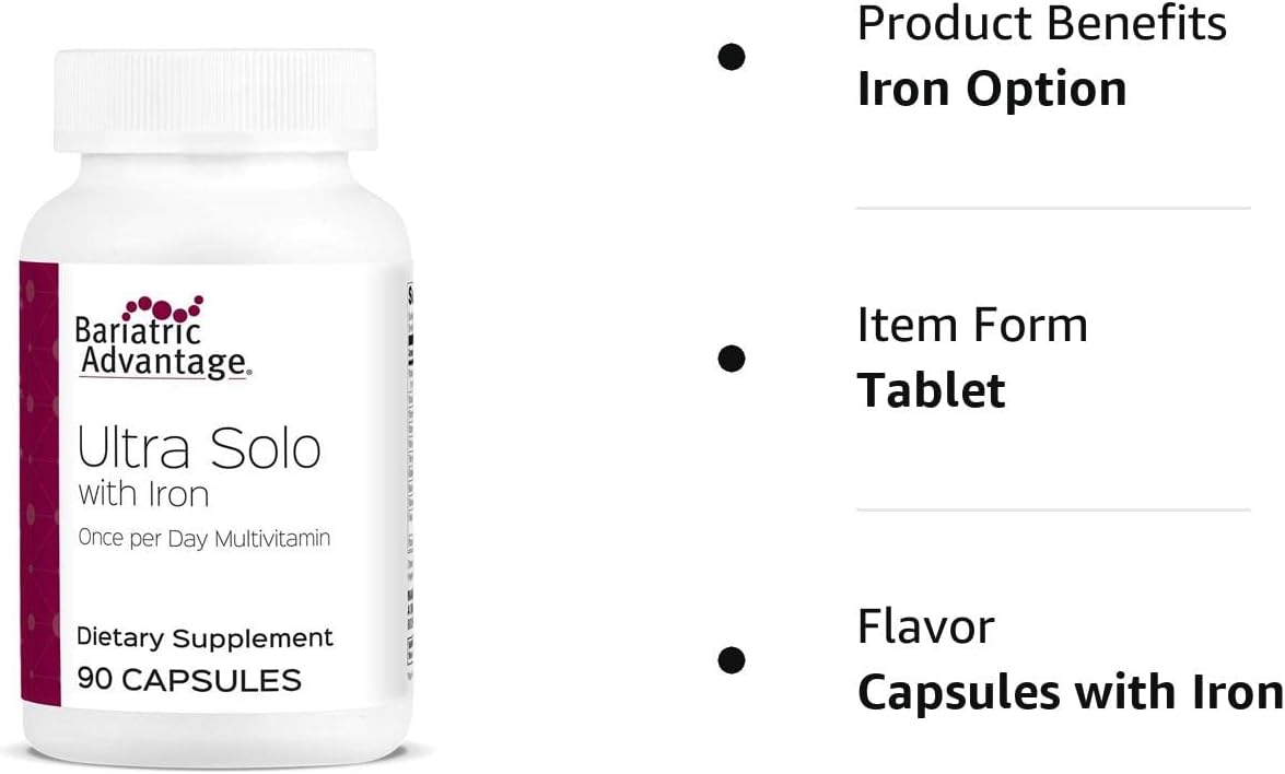 Bariatric Advantage Ultra Solo with Iron Daily Multivitamin for Gastric Bypass Surgery and Sleeve Gastrectomy Patients, Includes Vitamin B12, C, D, K, Thiamin and Copper – 90 Count