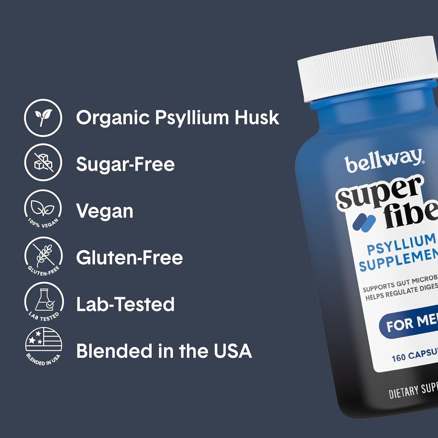 Blended in the USA: Bellway mens fiber supplement capsules are plant-based, made with organic psyllium husk and it contains both soluble and insoluble fiber, in addition to being non-GMO, gluten-free, sugar-free, lab-tested, and free of artificial ingredients