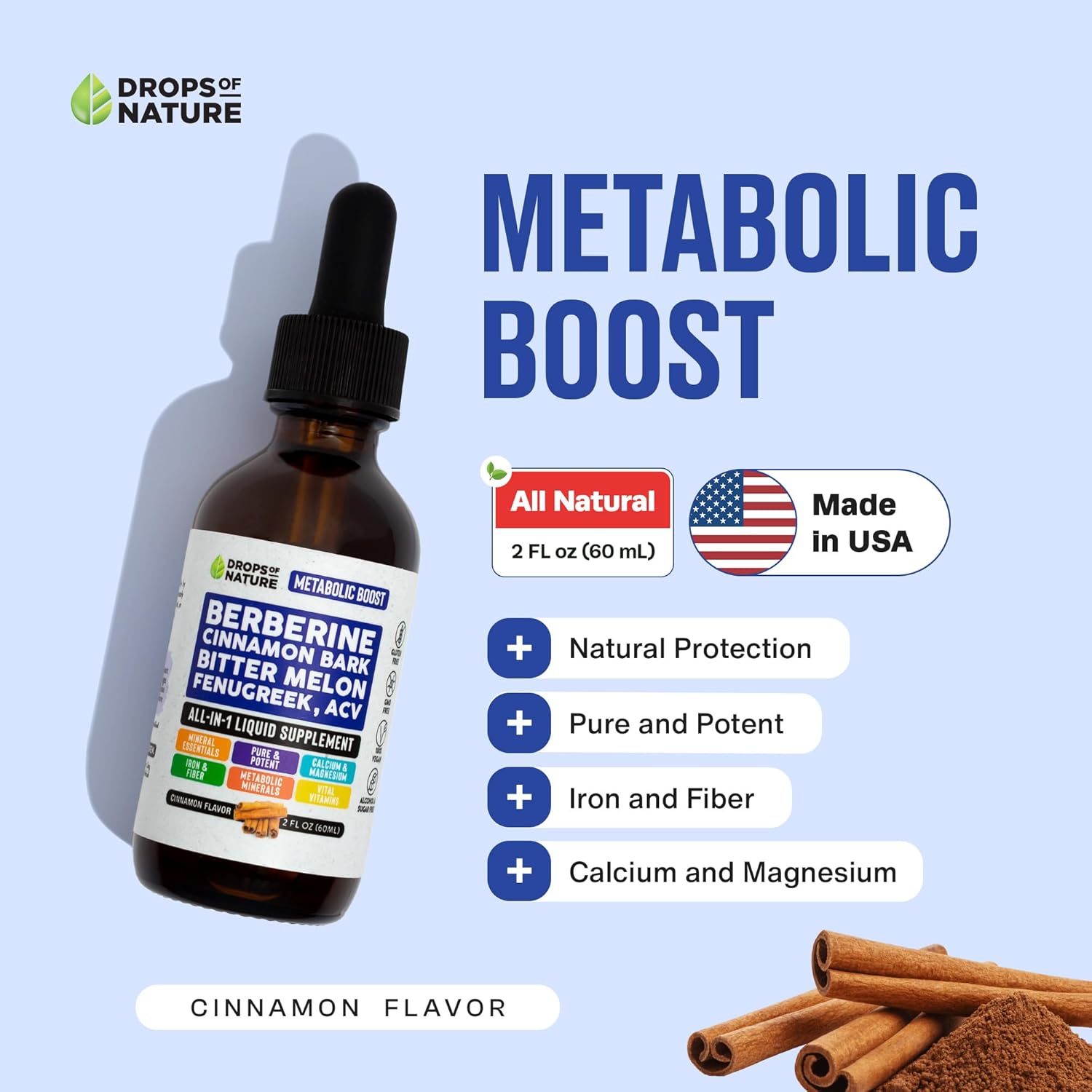 ADVANCED ABSORPTION & COMPREHENSIVE WELLNESS: Our berberine liquid supplement with Apple Cider Vinegar and Cinnamon offers quicker absorption than traditional apple cider vinegar capsules, integrating Ceylon Cinnamon and Fenugreek for wellness. Comparable to ACV drops and gummies or cinnamon sticks whole, it’s a holistic solution without the constraints of conventional cinnamon capsules, fenugreek capsules, or apple cider vinegar capsules. Just mix 2 drops into your drink for daily health boost!