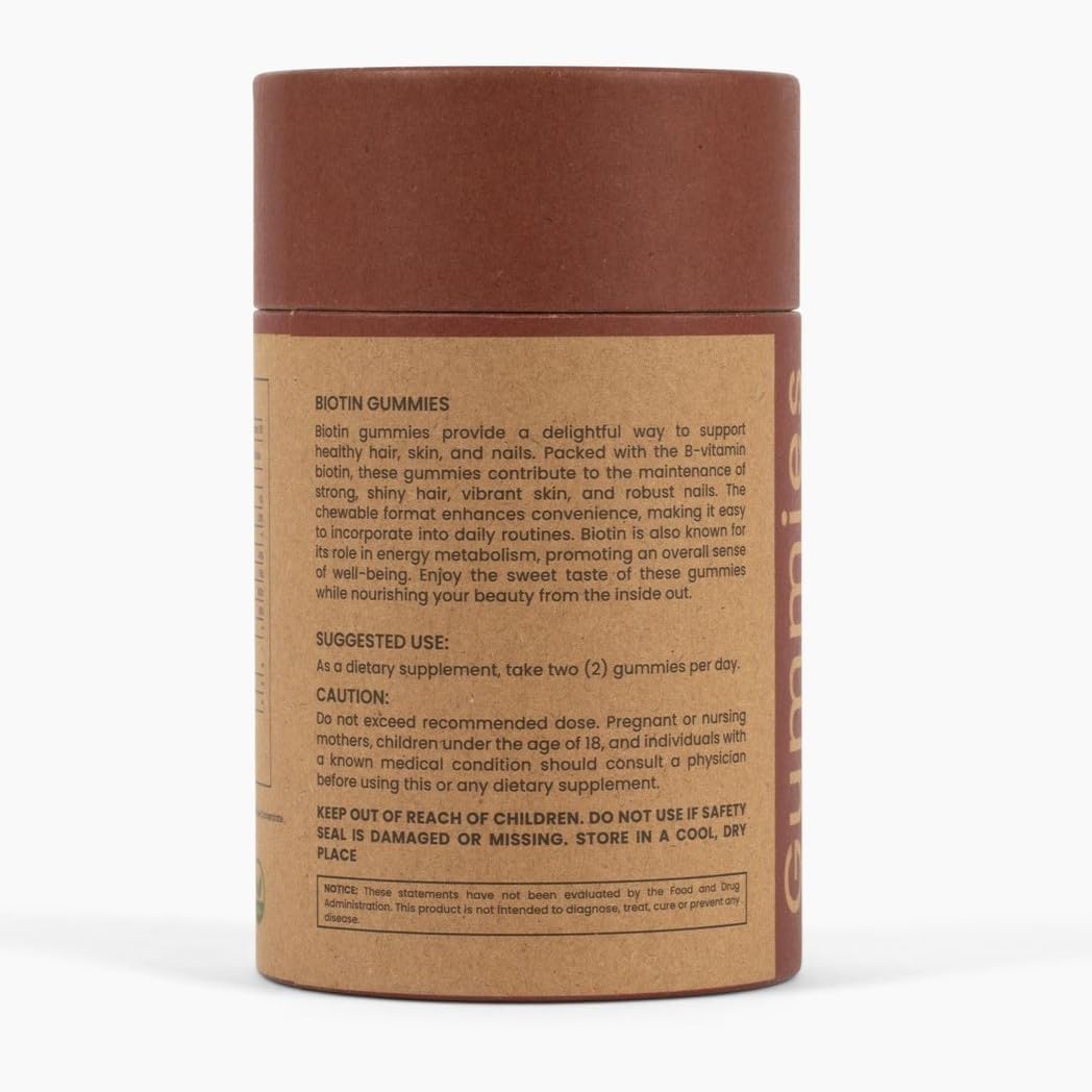 Biotin 5000mcg Gummies with VIT A, B12, C, D3, E + Folic Acid (Vegan Biotin)