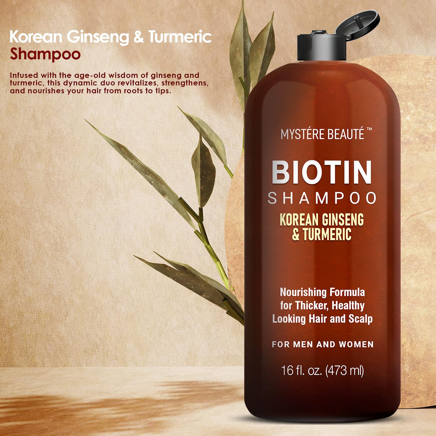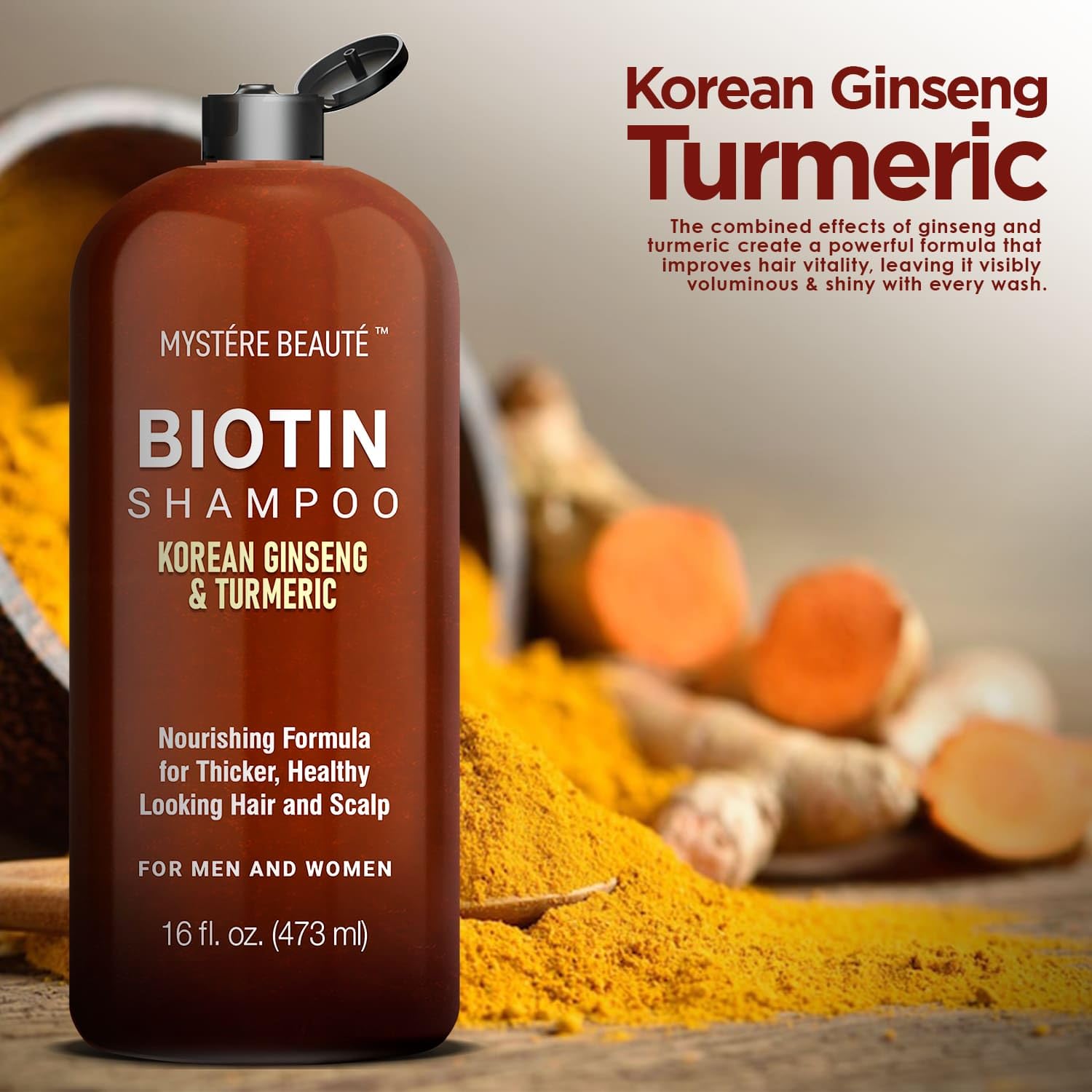 Biotin Shampoo with Korean Ginseng & Turmeric – Thickening Shampoo, Fights Hair loss, Sulfate Free, Daily Shampoo for Men & Women- Best For Thinning Hair, 16 fl oz
