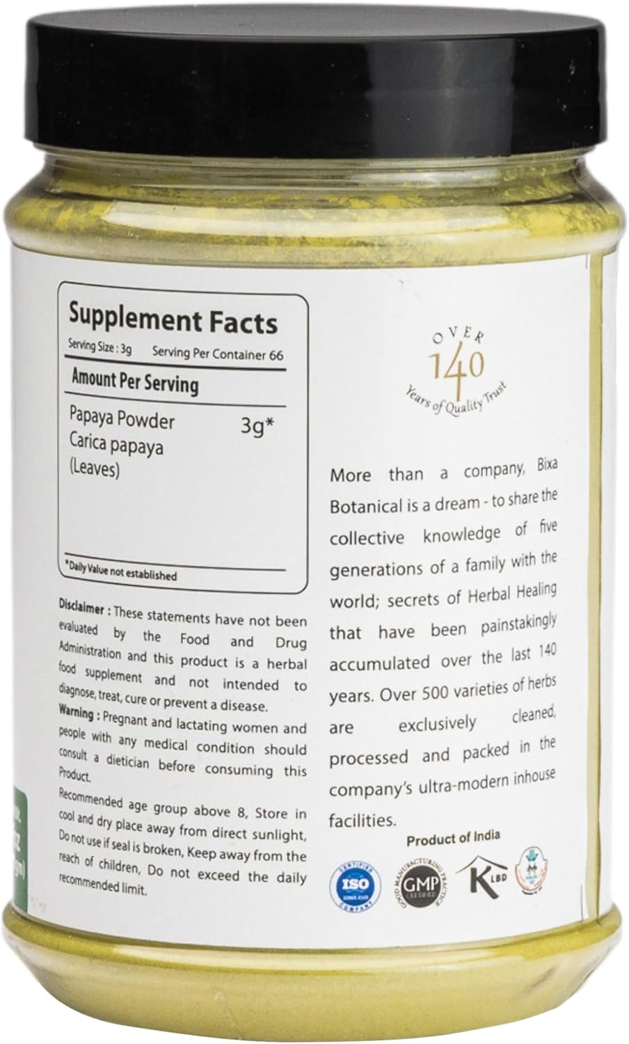 bixa BOTANICAL Papaya Leaf Powder (Carica Papaya) | Ayurvedic Herb, Anti-oxidant Agent | Herbal Supplement (200g/7Oz)