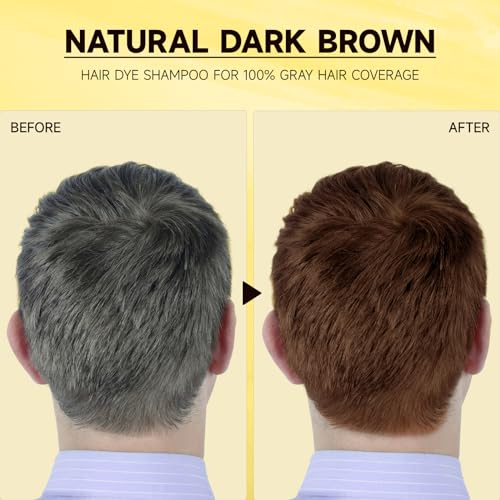 【Say Goodbye to Gray Hair】 Simply massage the dark brown hair dye shampoo into your hair and wait 10-20 minutes to quickly color your hair dark brown.(Warm tip: do a skin test before using for the first time)