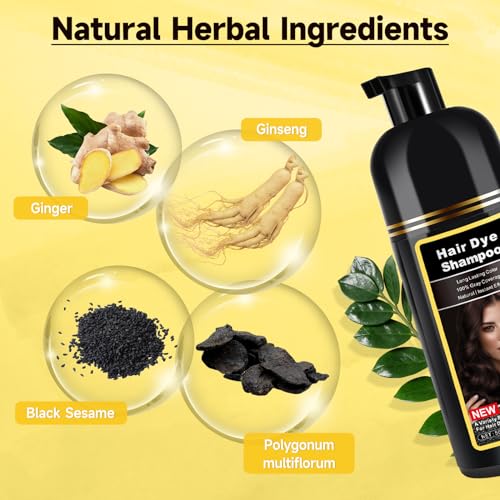 Black Hair Dye Shampoo, 3 in 1 Hair Color Shampoo for Women Men Gray Coverage, Herbal Ingredients Black Hair Dye 500ml