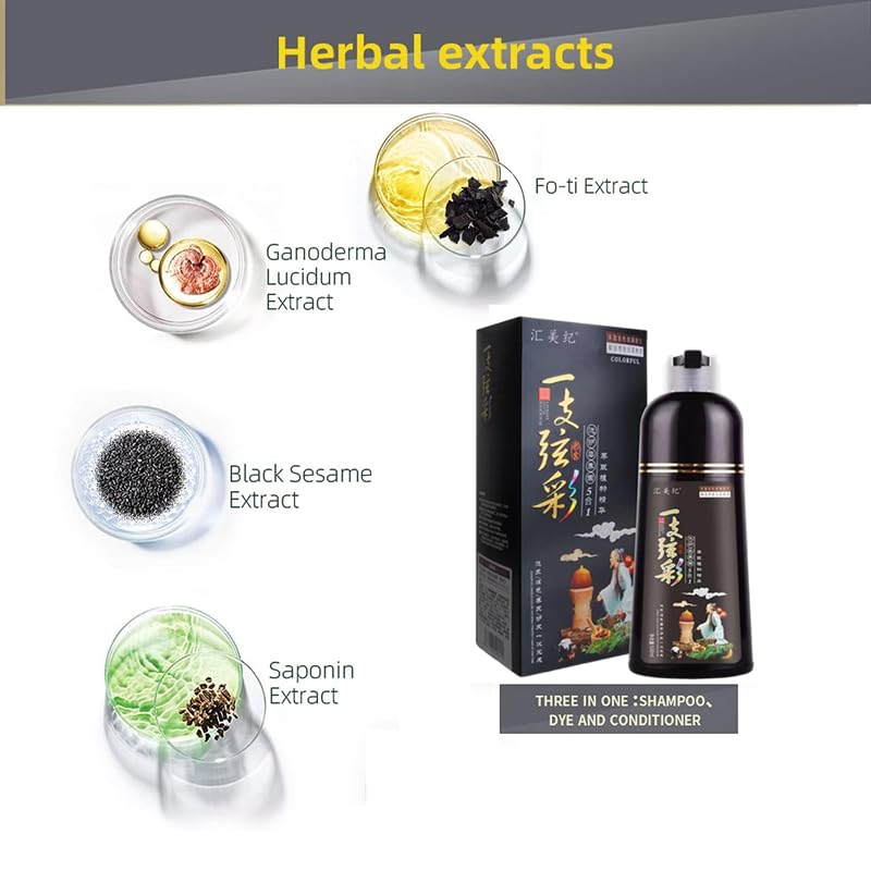 Black Hair Dye Shampoo for Gray Hair Coverage Hair Color Shampoo for Men and Women, Herbal Hair Dye Shampoo 3 in 1, Instant Black Hair Shampoo Dye
