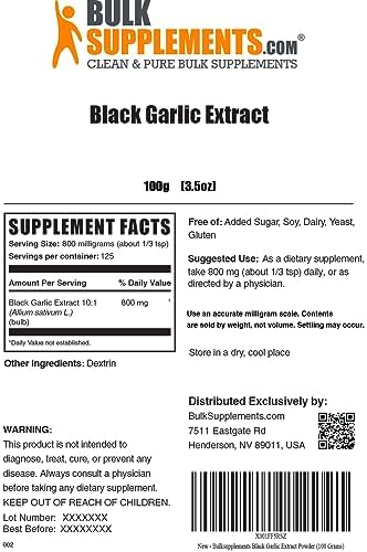 Be the first to review “BULKSUPPLEMENTS.COM Black Garlic Extract – Aged Garlic Extract – Garlic Supplements – Antioxidants Supplement – Black Garlic Supplement – Blood Circulation Supplements (100 Grams – 3.5 oz)”