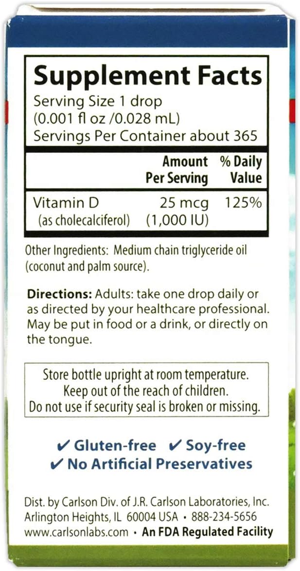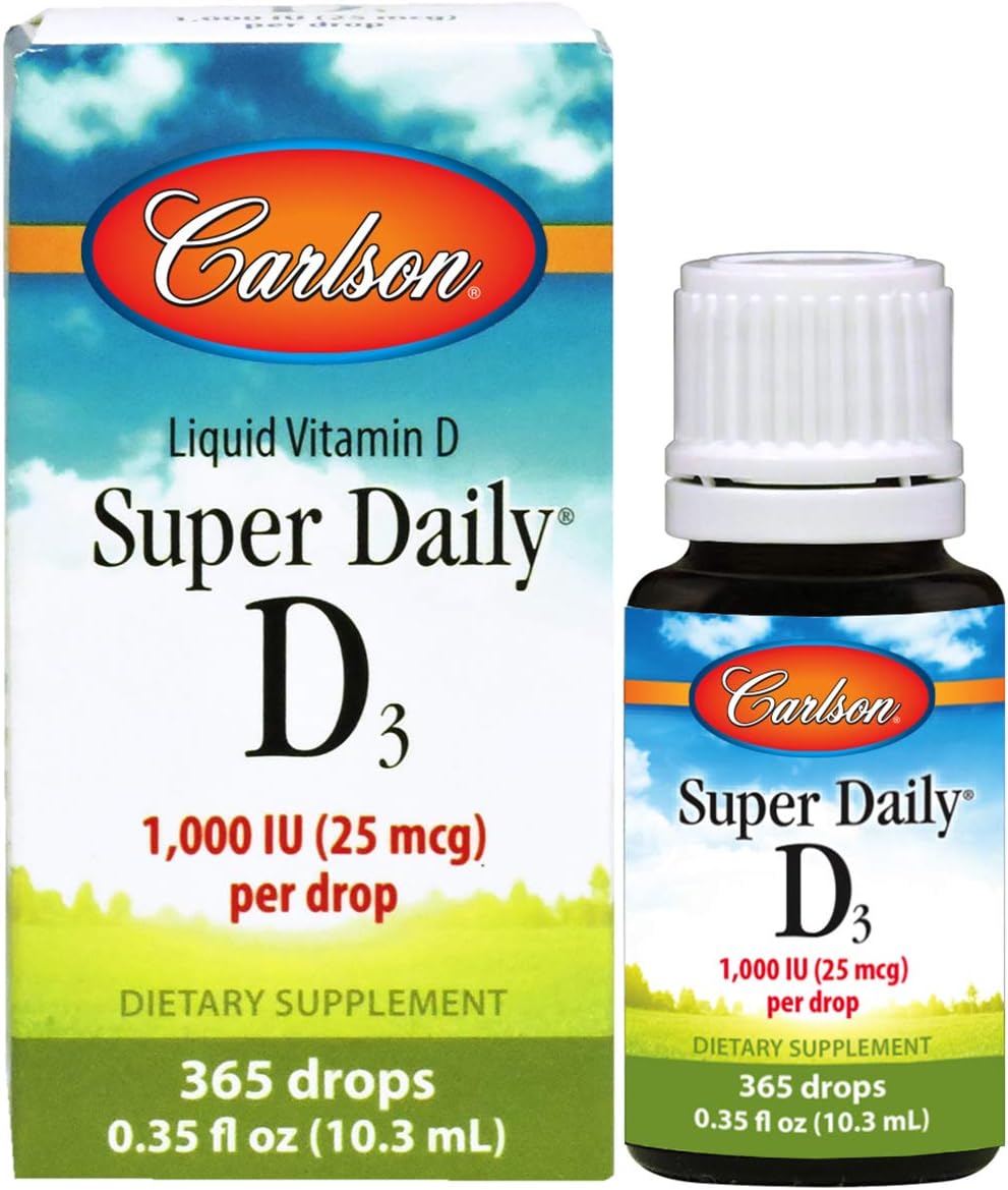 Carlson – Super Daily D3, 1000 IU (25 mcg) per Drop, Heart & Immune Health, Liquid Vitamin D3, Unflavored, 365 Drops (4 Pack)
