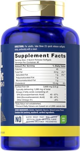 Carlyle Fish Oil 3600mg | 1080mg Omega 3 | 120 Count | Non-GMO and Gluten Free Supplement