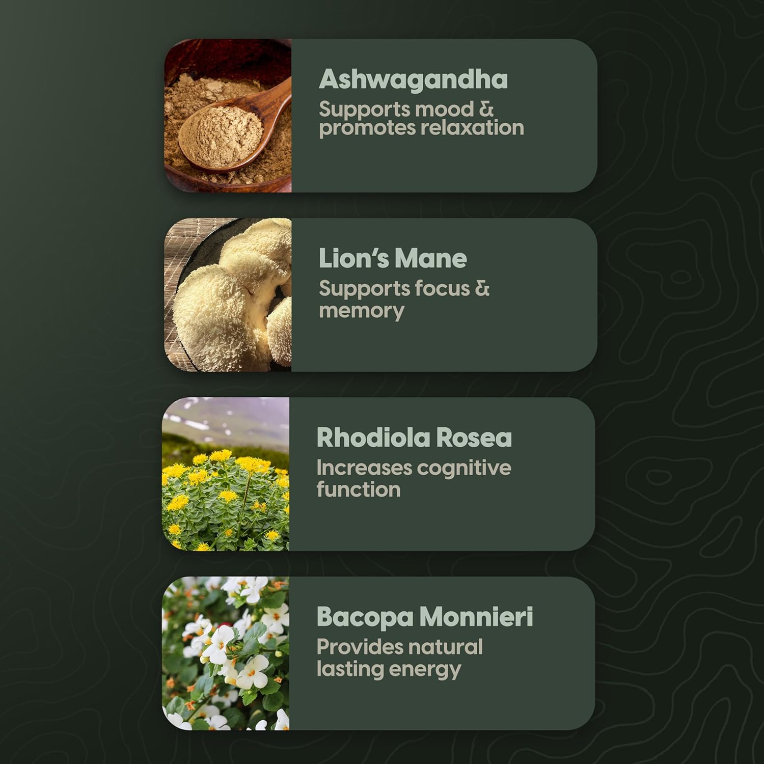 ASHWAGANDHA: Do you feel like your busy lifestyle is taking a toll on your mood? Ashwagandha can help. This ancient herb has been used for centuries to help individuals stay calm. Its powerful adaptogenic properties make it an easy choice for those seeking a natural way to improve their mood