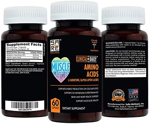 CLINICAL DAILY Acetyl L Carnitine – Alpha Lipoic Essential Amino Acids Supplements Capsules for Women, Men or Elderly- ALCAR ALA Complex Helps Boost Metabolism, Brain, Heart, & Muscle Health- 60 Pills