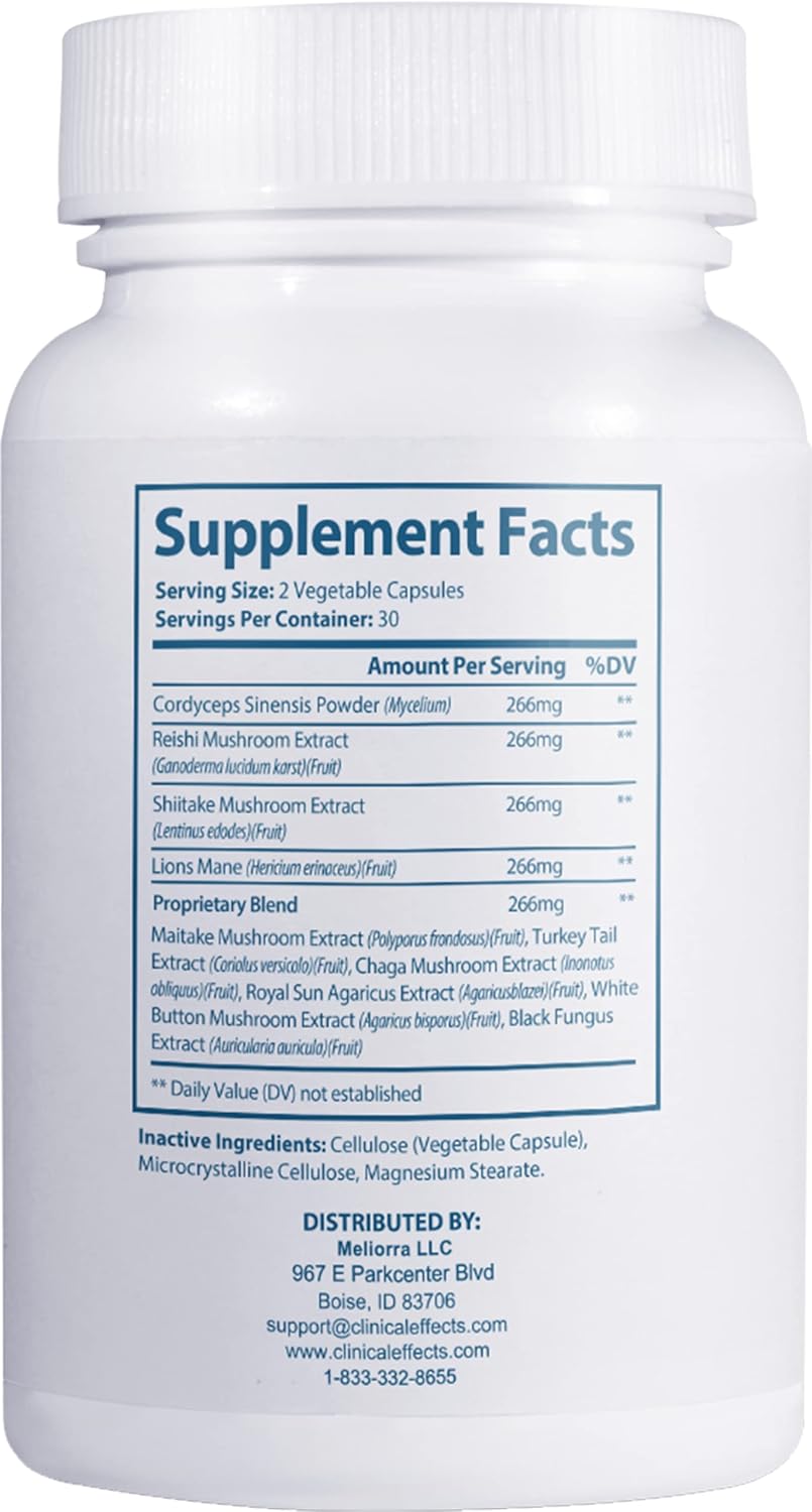 Clinical Effects Mushroom Formula 10 – Natural Mushroom Supplement for Focus, Mood, and Brain Booster Support – Nootropic Supplement and Immune Support – 60 Veggie Capsules – Made in The USA