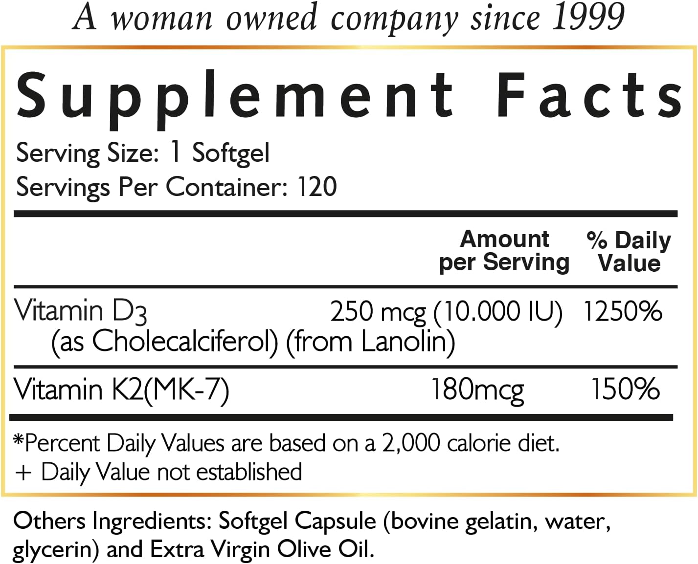 Coco March Vitamin D3+K2 10,000 IU – 4 Month Supply HIGH POTENCY – Immune & Joint Health Gluten Free, GMO Free, Dairy Free, Keto Friendly, Paleo Friendly, 250 mcg of D3-180 mcg of Vitamin K2