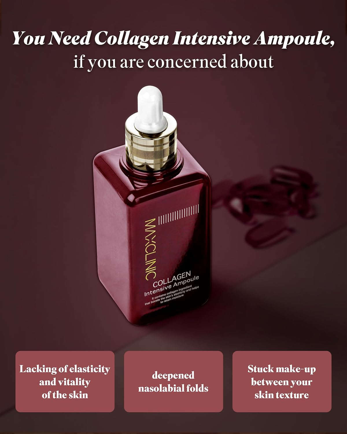 Collagen Intensive Ampoule | Firming Serum for Face w/ 3 Types of Collagen | Hydrating Face Serum Ampoule Korean Skin Care | Glass Skin Ampoule Collagen Serum (3.38 fl oz)