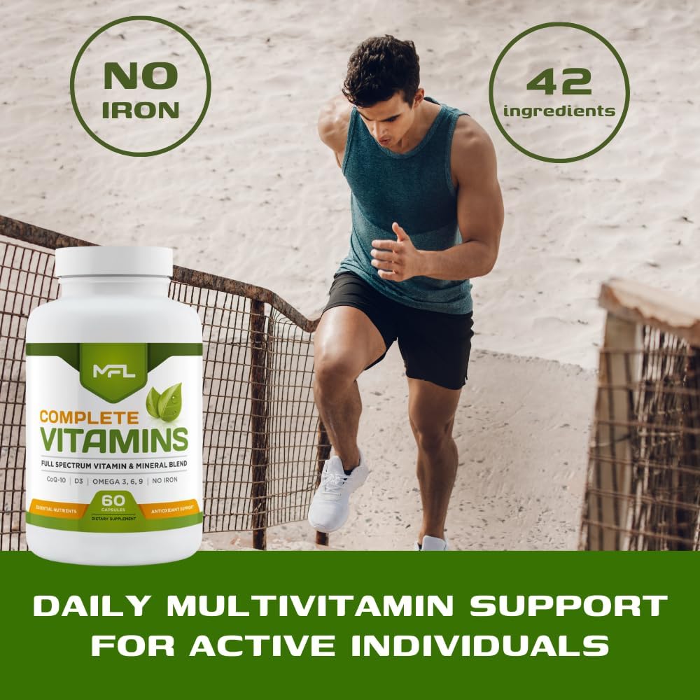 Complete Vitamins | MULTIVITAMIN & Minerals | Omega 3.6.9 | COQ-10 | D3 | NO Iron | 60 Capsules | 30 Servings