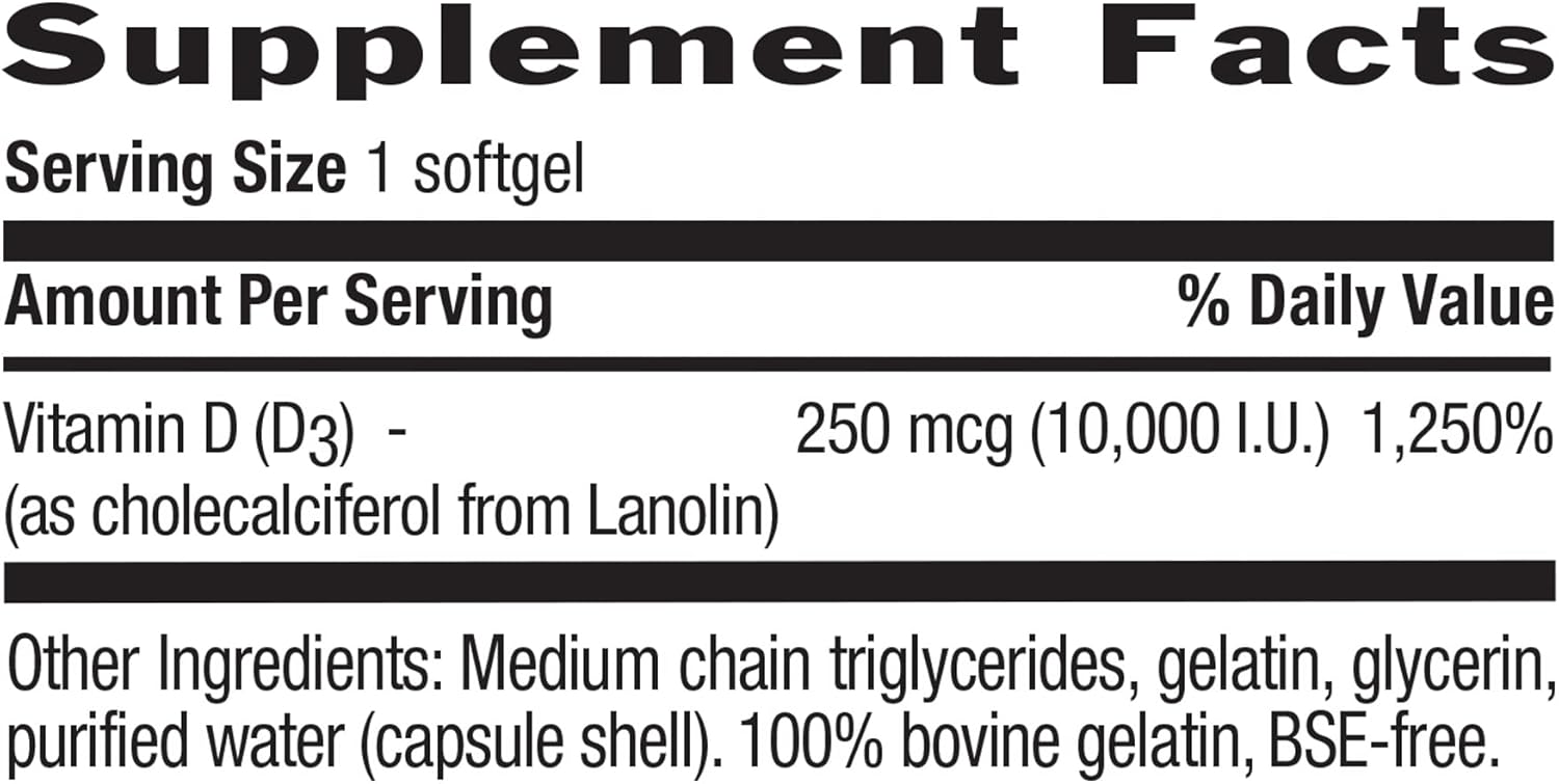Country Life Vitamin D3, High Potency, Non-Fish, 10,000 IU, 200 Softgels, Certified Gluten Free