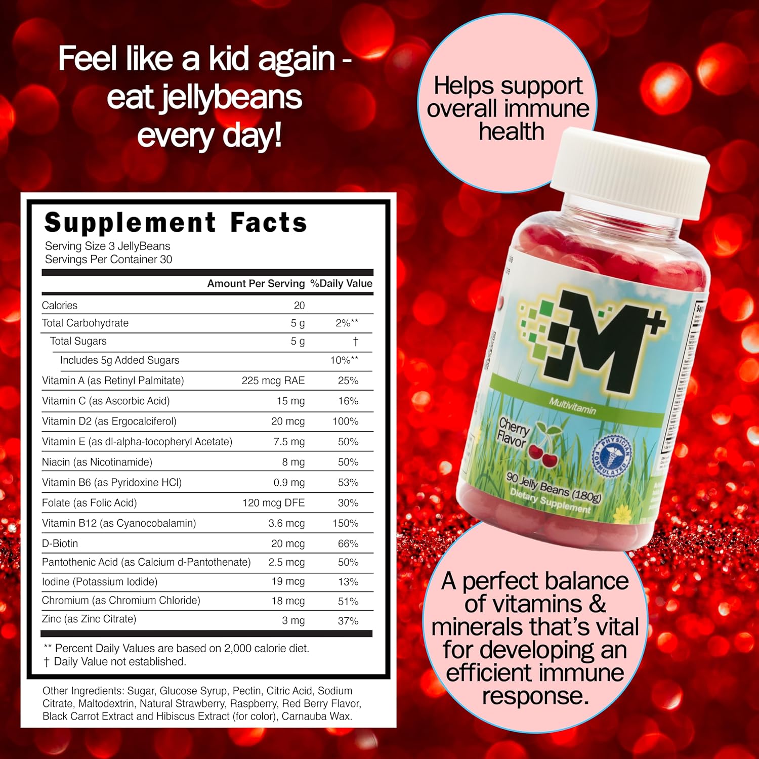 Daily Multivitamin Jellybeans –– Natural Cherry Flavor – Non-GMO – Gluten Free – Vegan Friendly