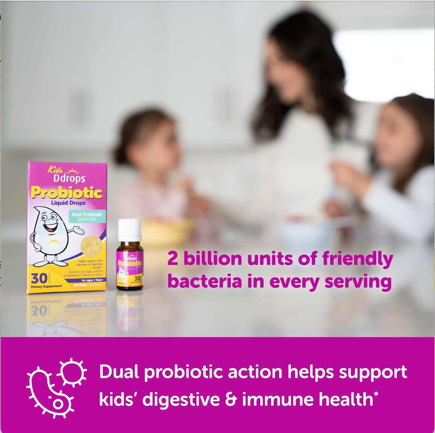 Ddrops Kids Probiotic Liquid Drops, Dual Probiotic Support, Helps Support Kids’ Immune and Digestive Health, 30 servings