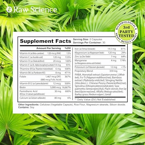 【DHT BLOCKER FOR MEN & WOMEN】 – DHT Blocking alongside saw palmetto oil can help repair a receding hairline. These incredible hair loss pills, also known as hair supplements for hair growth, are perfect for those struggling with mens hair loss. Try Raw Science’s anti hair loss DHT blocker to correct hair loss for men.