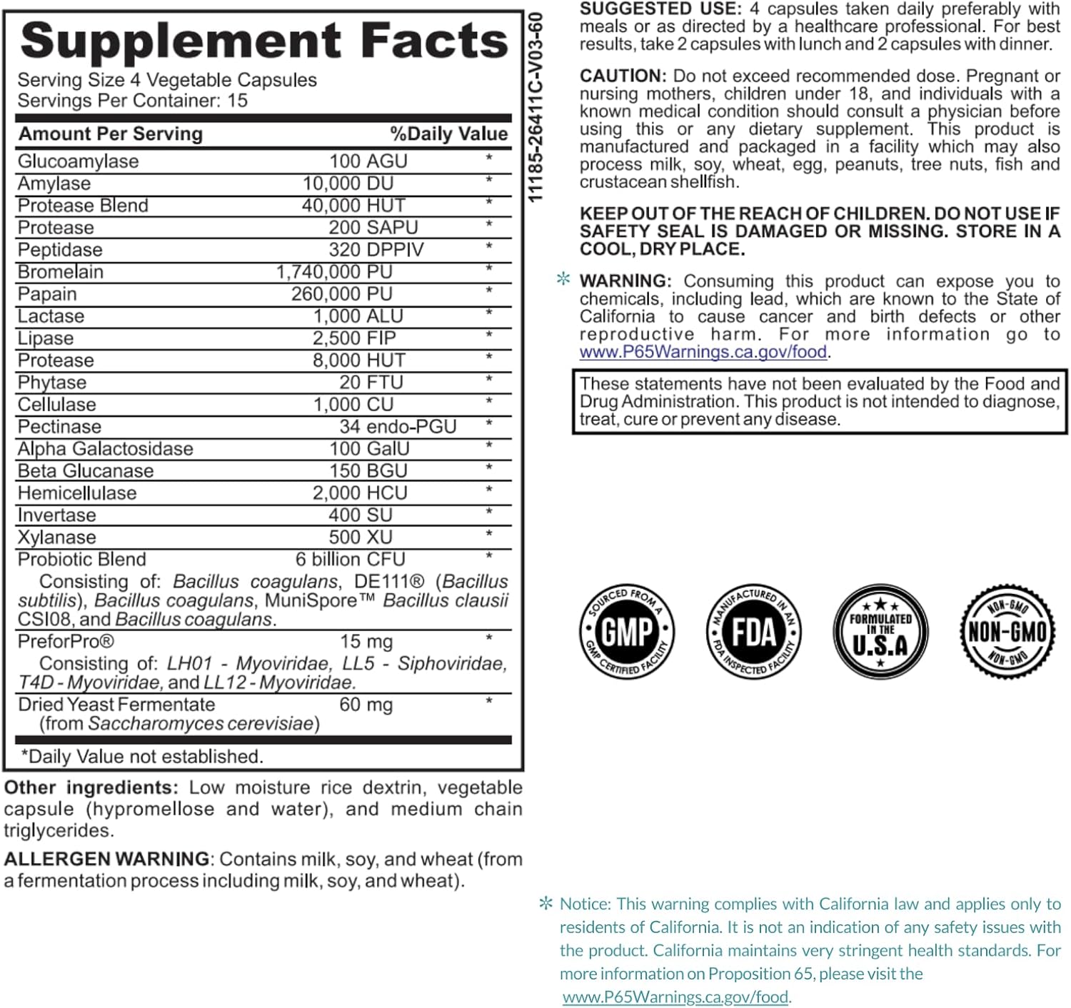 Digestive Probiotic, Prebiotic, Postbiotic & Enzyme for Women, Complete Gut & Whole Food Digestive Support Supplement, Shelf Stable Advanced Pre/Pro/Postbiotic, 60 Capsules