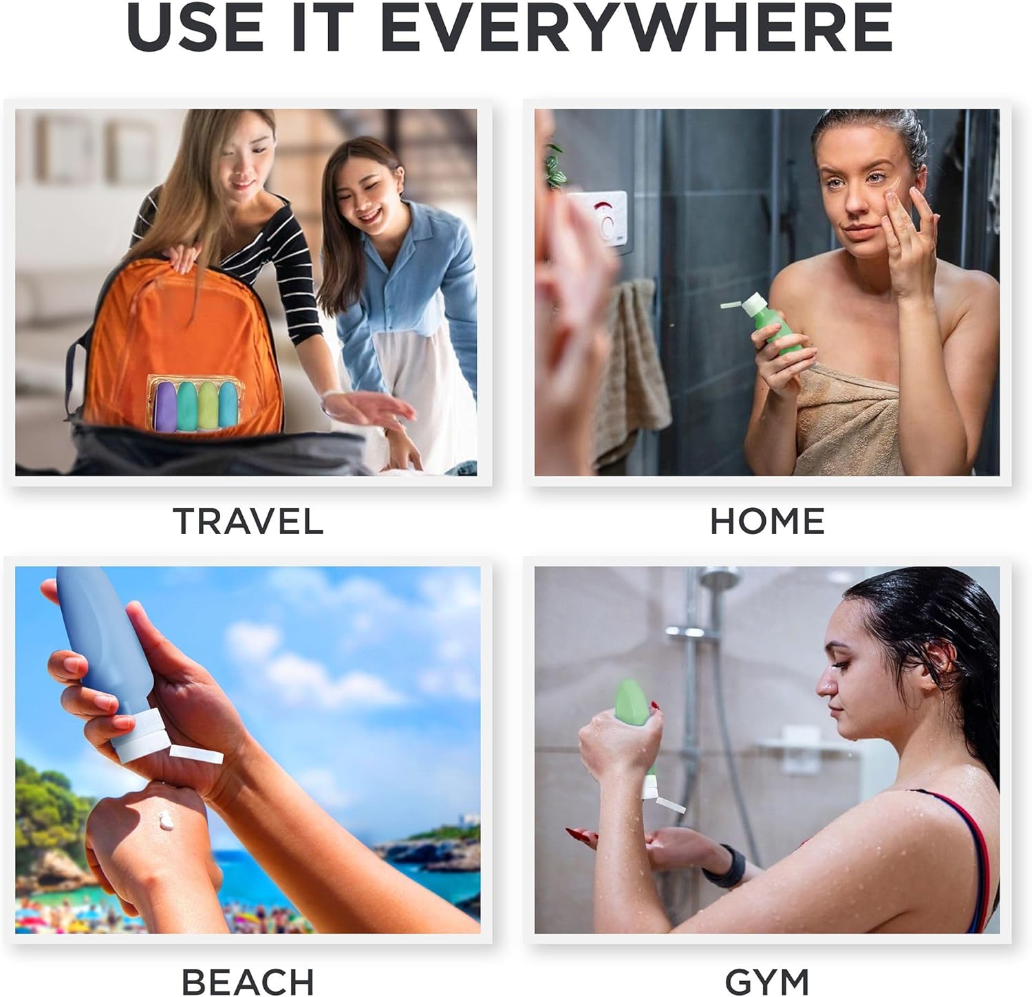 Say Goodbye To Leakage And Messy Spillage On Your Wardrobes And Luggages! With their anti-leakage design, these soft and squeezable silicone travel bottles will only dispense bottle contents when its silicone body is pressed. Each bottle container includes a convenient flip cap with 3 leak proof walls and a drip free dispenser valve to protect your personal items from leaks, spills or drops. Go travel the world in comfort and style with these reliable and attractive travel bottles.