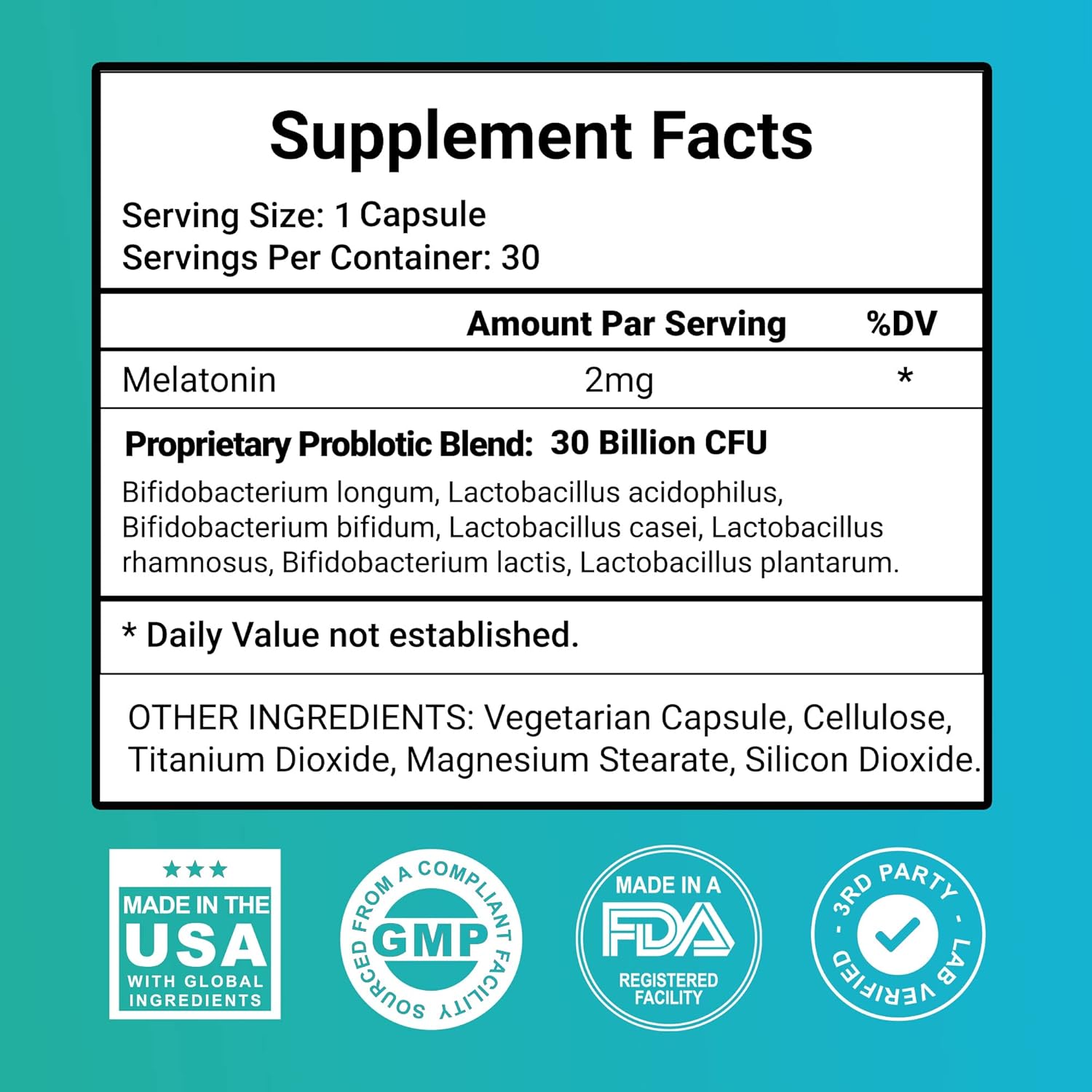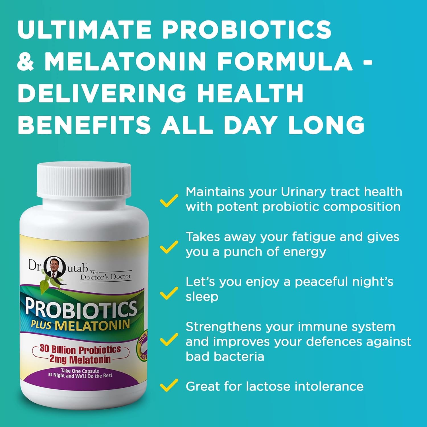 Dr. Qutab 30 Billion CFU Probiotics plus Melatonin 2 mg for Sleep Aid – Probiotics for Digestive and Gut Health – Lactobacillus Rhamnosus and Lactobacillus Acidophilus (30 Capsules)
