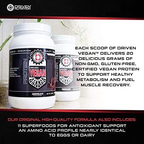 Driven Vegan Protein Powder (2 lbs) – 100% Plant-Based, Essential Amino Acids + Antioxidant-Rich Superfoods – Clean, Non-Dairy, High-Fiber – Build Muscle & Burn Fat – Post-Workout Recovery- Vanilla