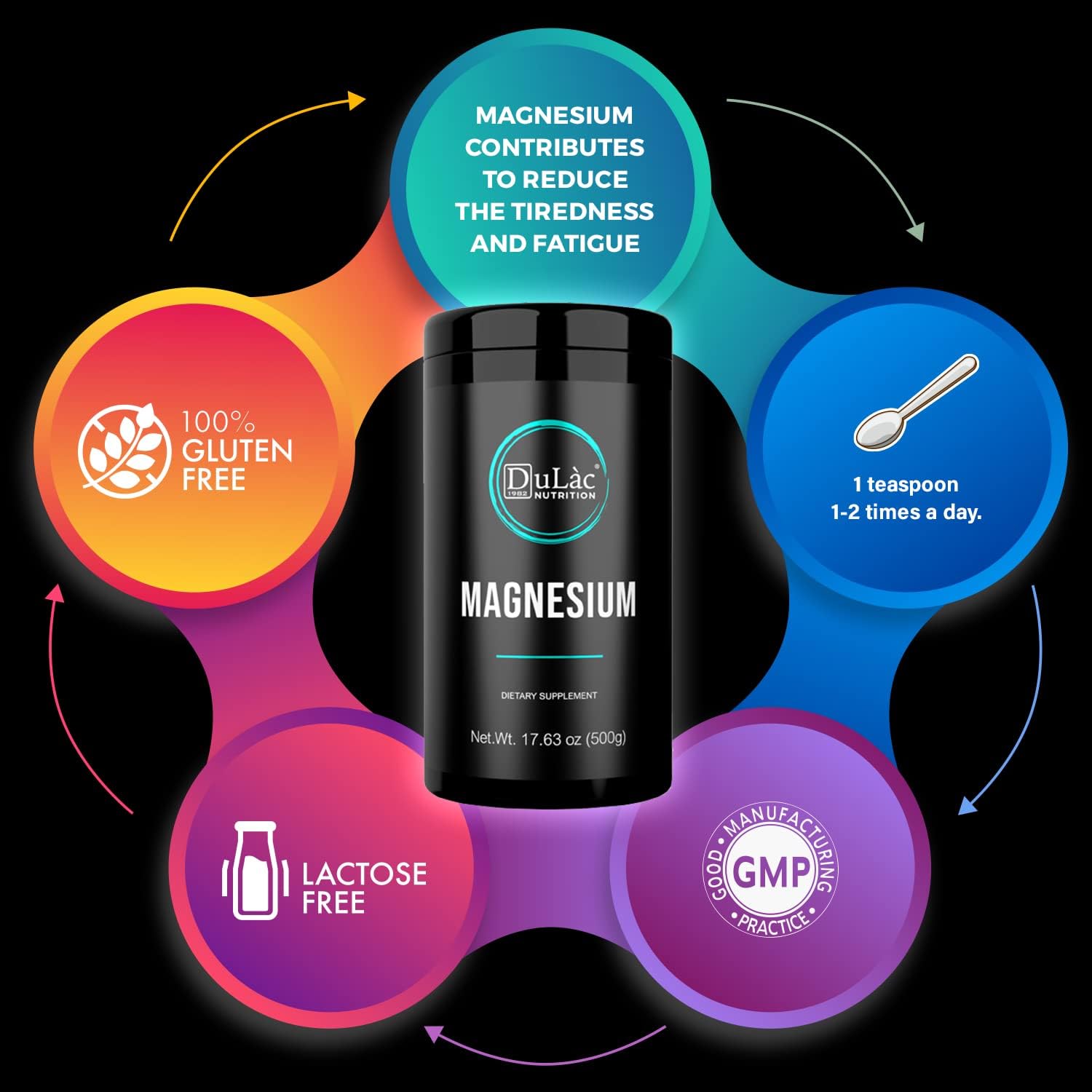 Dulàc – Magnesium Powder 500 gr (450 mg Pure Magnesium per Dose) Made in Italy, Free of Allergens and GMOs – Reduction of Fatigue, Increased Energy, Normal Psychological Function
