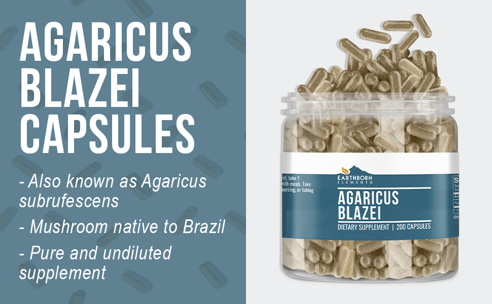 Earthborn Elements Agaricus Blazei 200 Capsules, Pure & Undiluted, No Additives