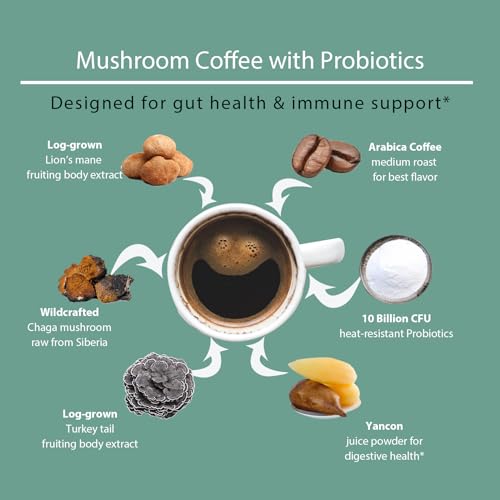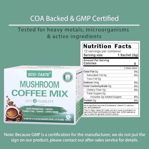 DESIGNED FOR GUT-HEALTH: ECO-TASTE Gut Viability Coffee was mixed with -Arabica coffee, Turkey Tail, Chaga, Lion’s mane, Yacon, and Probiotics