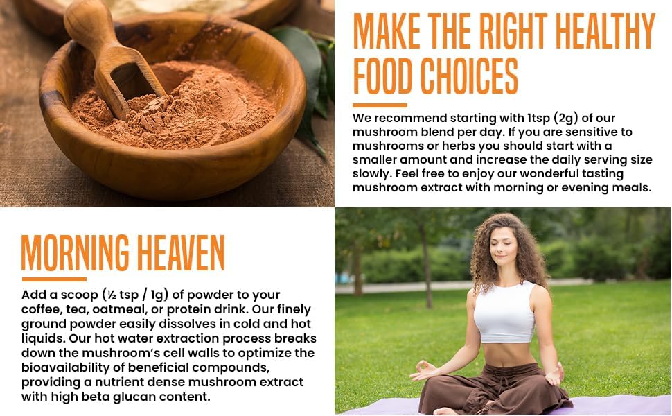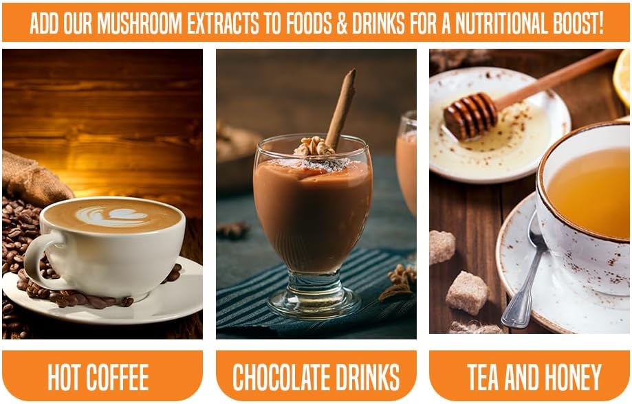 The perfect blend of the 7 super mushrooms; Too many mushrooms in a blend dilutes the benefit from each mushroom; Too few and you get only the benefit of a few; 7 is the magic number for the perfect blend; Try our vital 7 extract blend and compare it to the other brands; See what you may be missing; Enjoy the many benefits experienced by taking mushroom extracts; Add It to coffee every morning; It makes your favorite cup of java so rich and full-bodied; It’s a whole new experience