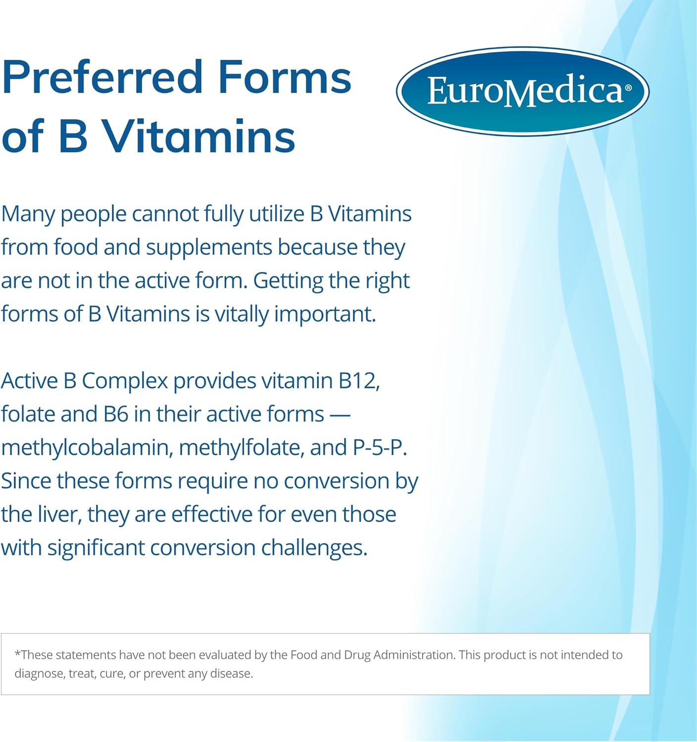 Euromedica Active B Complex – 60 Capsules – Biologically Active Forms of Vitamin B12, Folate & B6 – Non-GMO, Vegan, Gluten Free – 60 Servings