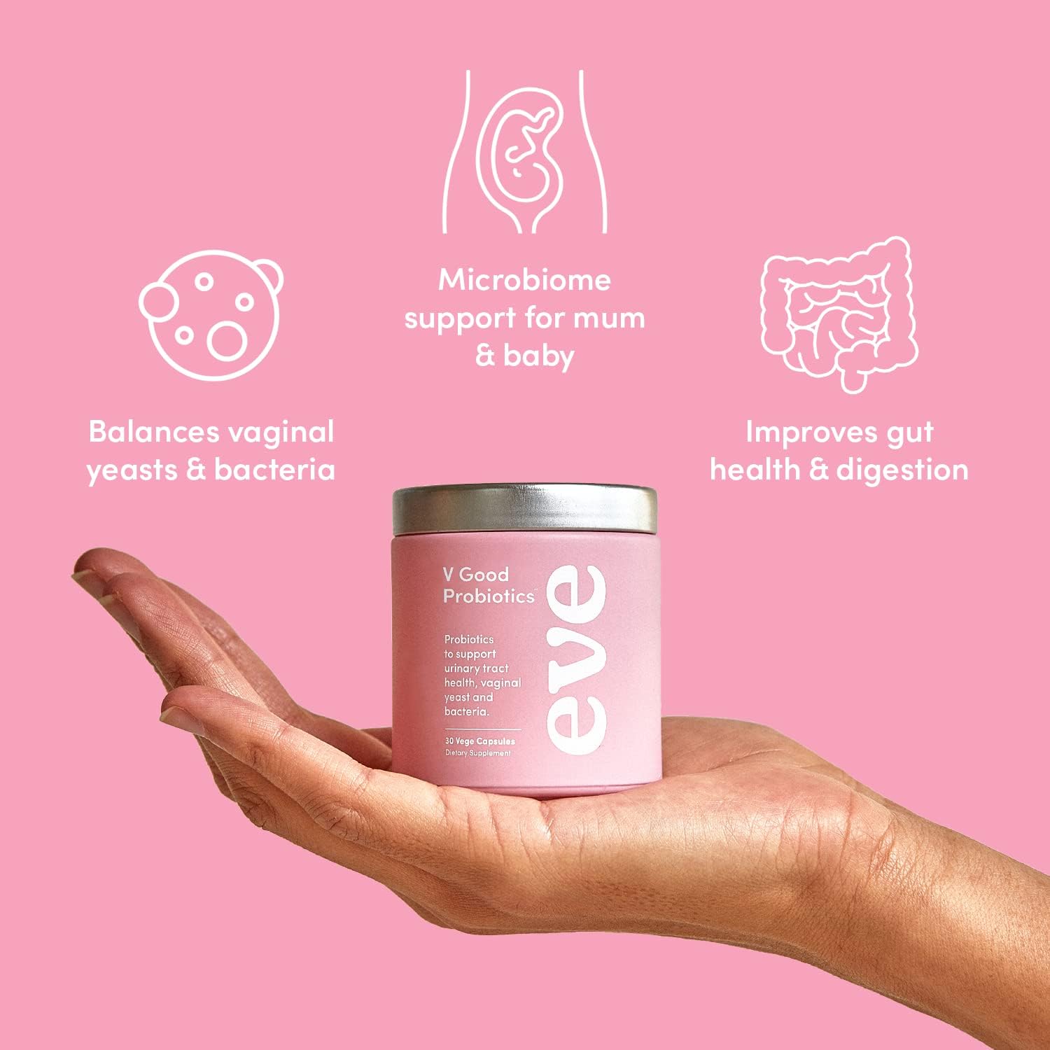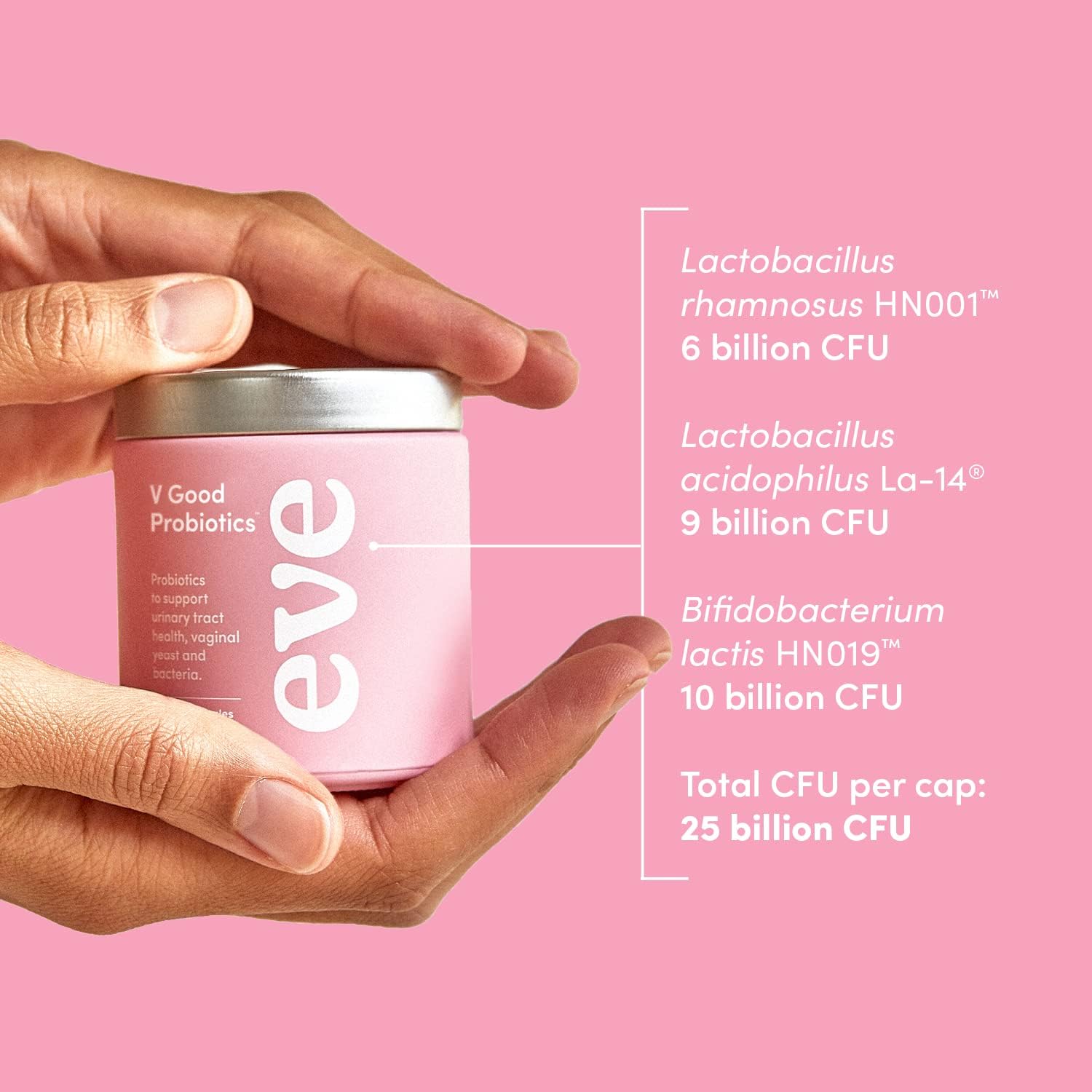 Eve V Good Probiotics | Vaginal Health Supplement | 3 Premium Strains, 25 Billion CFU | Better Gut Health | 30 Vege Capsules (30 Day Supply)