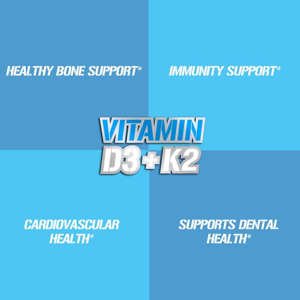 Evlution Nutrition Vitamin D3 + K2 for Immune System Support, Bone, Brain and Heart Health Support, Non-GMO and Gluten-Free, High Potency, Improve Calcium Absorption, 60 Servings