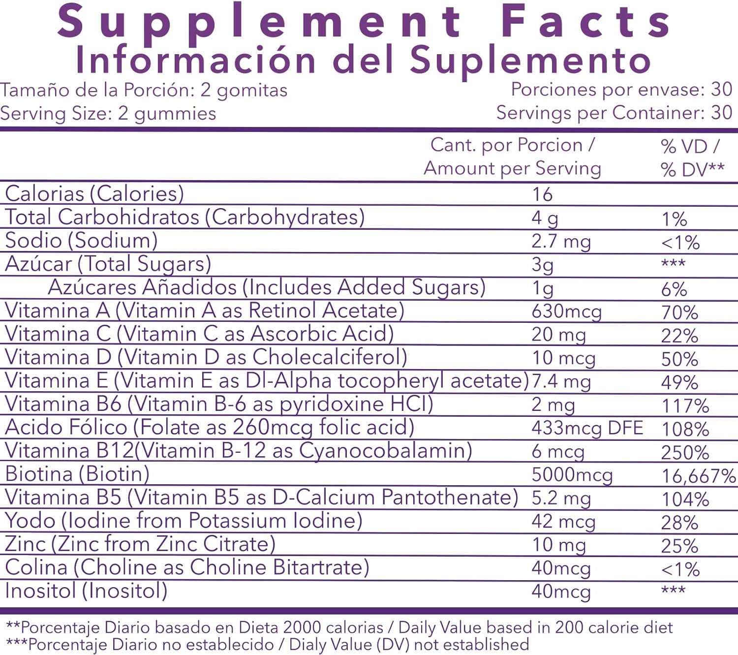 Fitamin Hair, Skin & Nails Gummies contains with biotin and vital nutrients to support beautiful hair, glowing skin, and healthy nails from the inside out.(2) Each serving of our delicious strawberry-flavored biotin gummies contains antioxidants vitamin E and vitamin C. Packed with vitamins that contributes to skin health, collagen production and formation and helps to maintain healthy hair.(2) Vitaminas Fitamin Cabello Uñas y Piel vitamins for women are a great product for your everyday routine and a delicious way to support your natural beauty from within.